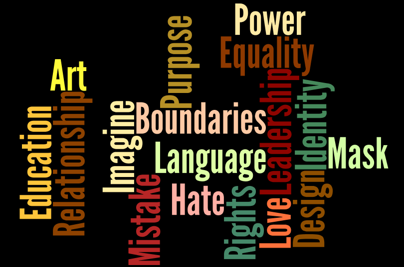 with language, identity, mask, boundaries, and relationship. Throughout the