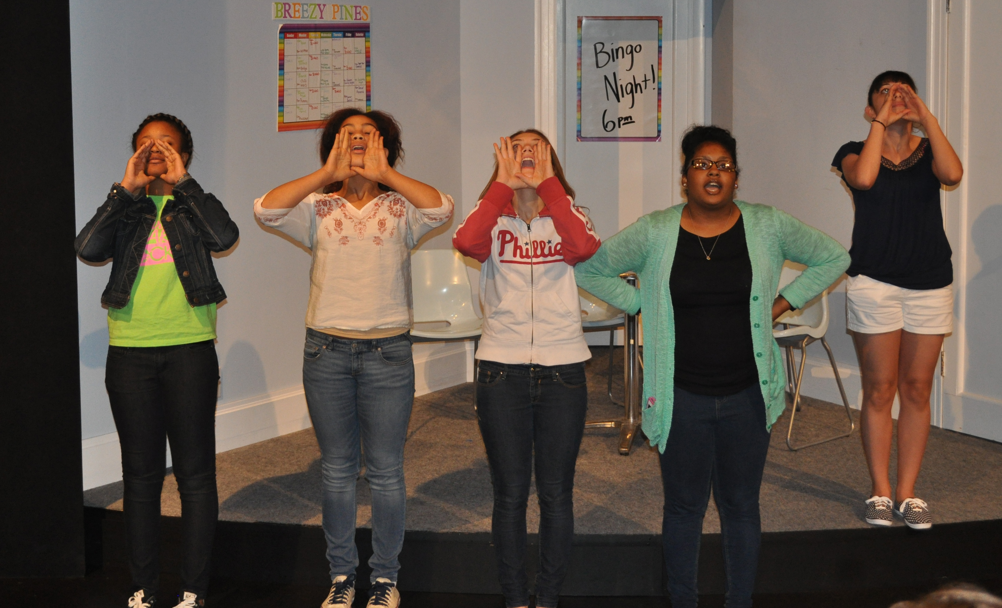 Actors from The Wilma Theater's production of Macbeth visited Orange and Red Stream English today as part of The Wilma's Artist-in-Residence Program. Ninth grade English students have been studying Macbeth over the last few weeks in preparation to see the play at The Wilma this Tuesday evening, October 26. In the pre-show visit, these actors helped students embrace the idea of being on the stage, of living and breathing Shakespeare's language, and aided in their further understanding of the play. The Wilma Theater will return to SLA on Friday, October 29 for a post-show session with the students to discuss their impressions of the production, and to continue the effective, engaging stage work started today.