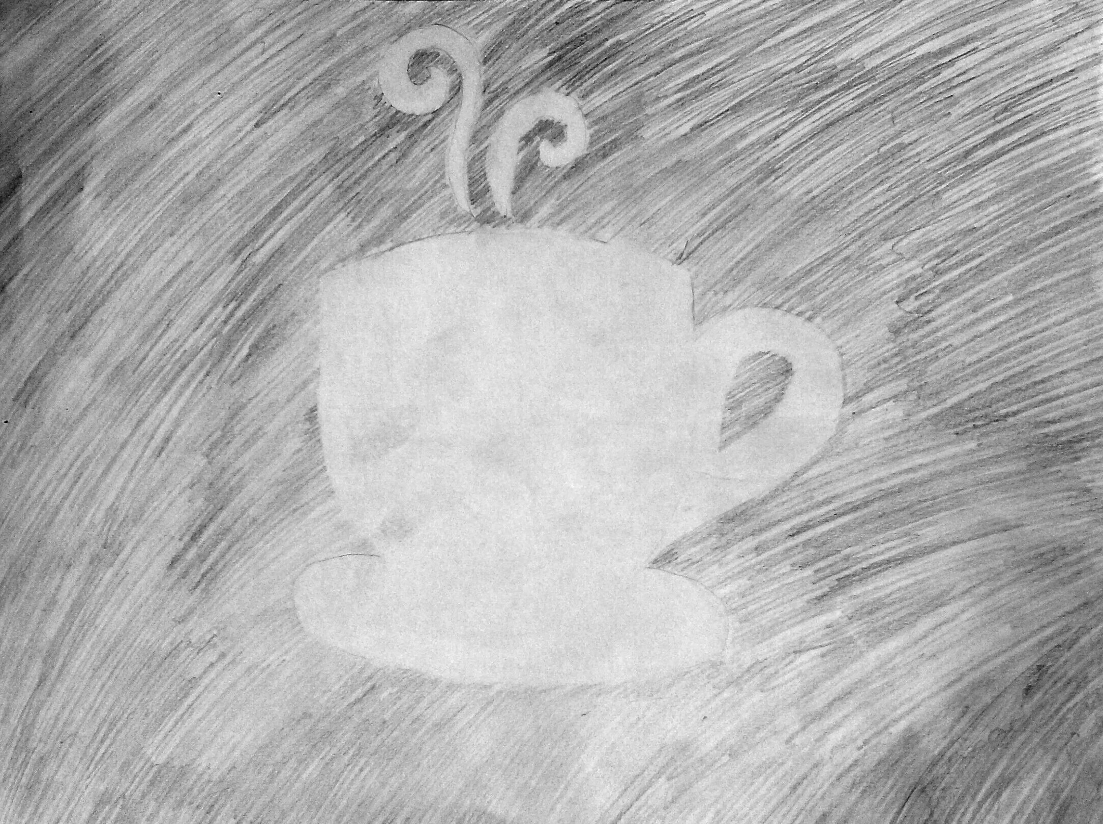 2. In my negative space drawing, I found the negative space by looking at the things behind the still life. This made it so that I was able to focus on the outline of the mug and saucer. I shaded in the space that wasn’t part of the main object of the drawing. This is called the negative space.
