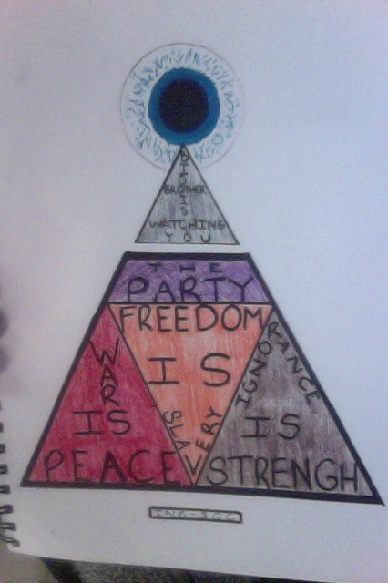 All three Superstates are at a incessant war and live under the yoke of their own versions of The Party and it’s privileged elite. The Party dictates society through the euphemistically named English Socialism (Ingsoc) political system. They, however, both fully devote their lives to Big Brother, an apocryphal, quasi-divine figure who is the at the utter Zenith of the hierarchy on earth where “WAR IS PEACE” and government surveillance is ubiquitous in the form of mind control telescreens. Any manifestation of individualism or thinking that may be deemed independent is looked on as a “thoughtcrime.” Those who are even accused of committing thoughtcrime are sent to a torture and reformation facility ironically named the Ministry of Love.