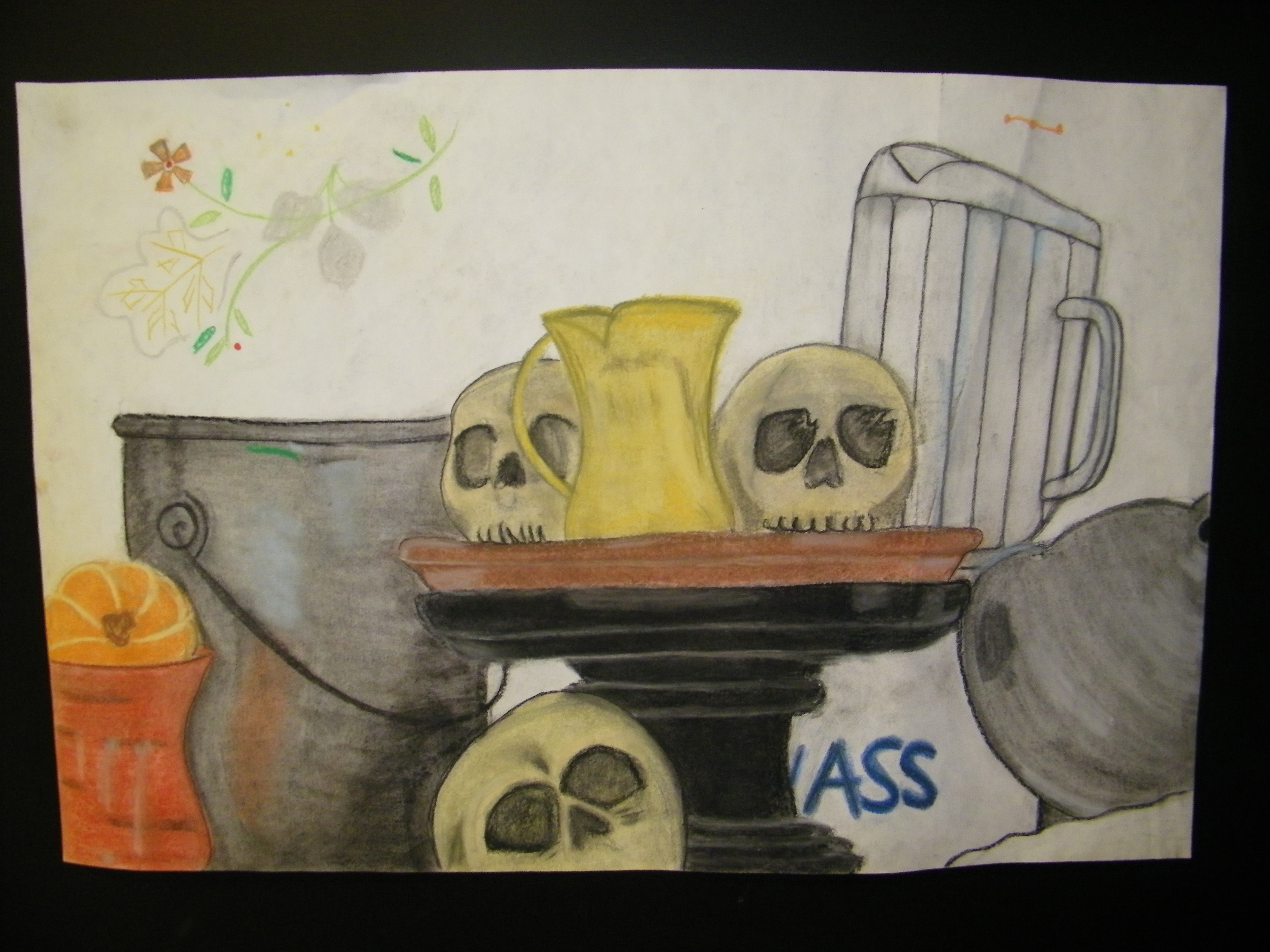 I did a few drawings that met with the guidelines but unfortunately I wasn't able to get to all of them. I worked very hard throughout the marking period though. First on the list, I started with a copy of a piece of art work by a famous artist. I didn't actually know where to start in the beginning. I've been attracted to modern art for a while and thought that maybe I should start there. As of right now while I type of my blog post, I can't exactly remember the artist's name but I will update this post as soon as I get it out from the textbook back in the classroom. But I was pretty proud of this piece because it took me as long as the paper beads I made (the sculpture), probably even longer
