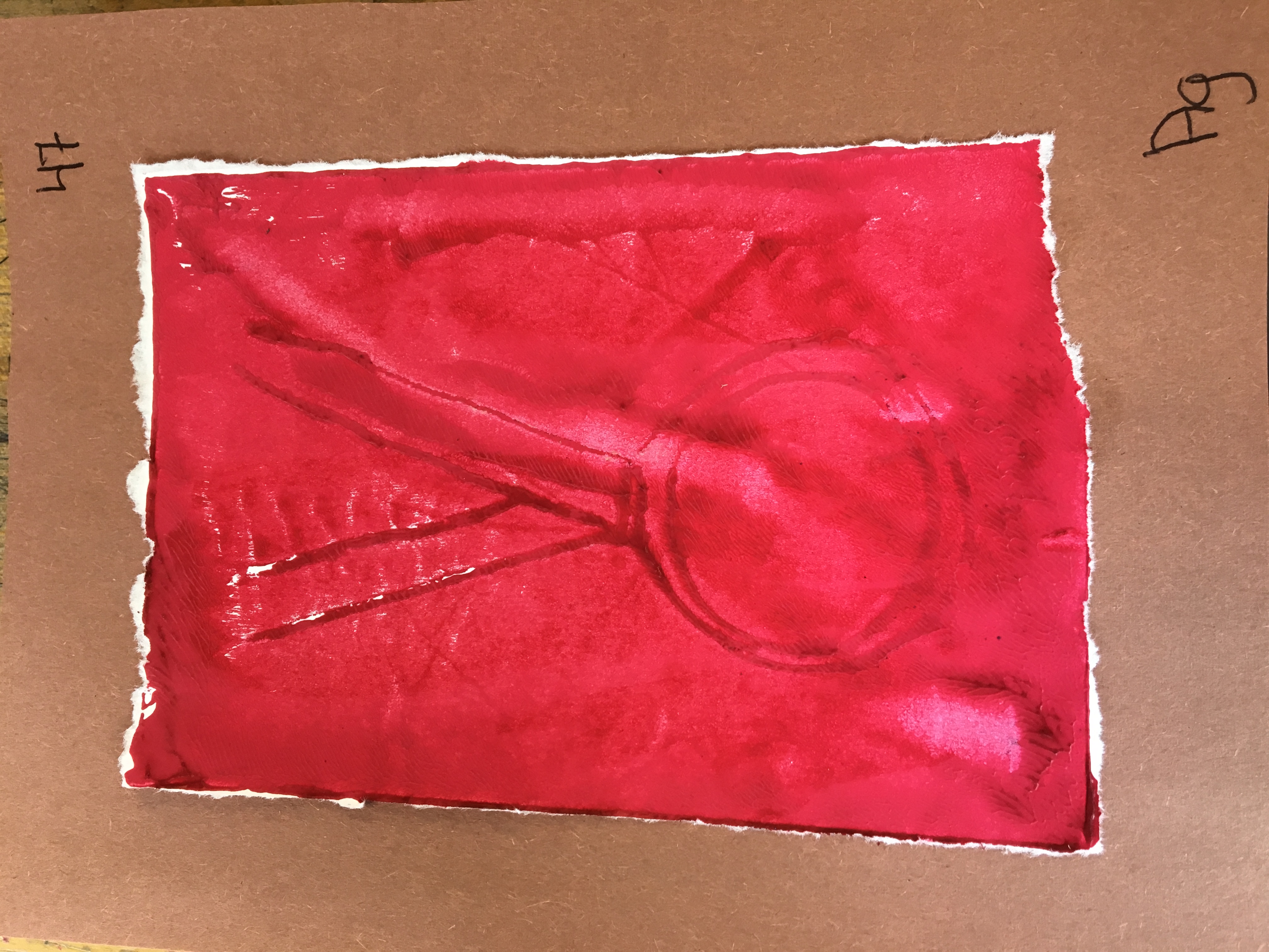 It took me about 2-3 class periods to get the whole print completed. I went through the process of trying to perfect my drawing. Then tracing and pasting. Waiting a week later to print and mat, printing it was hard because there was barely any paint left, but I mainly had trouble with matting.