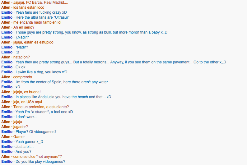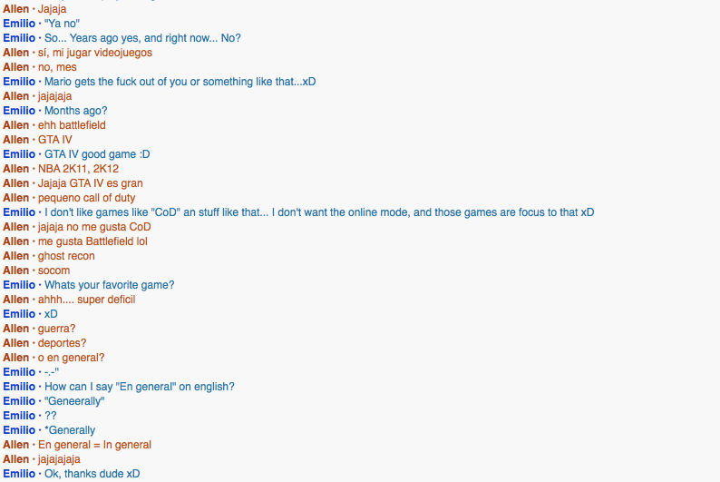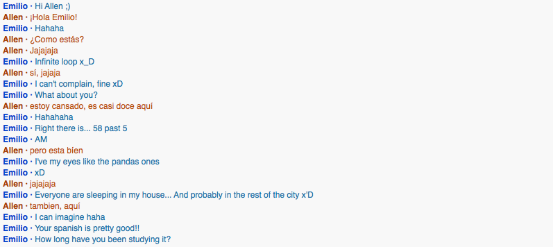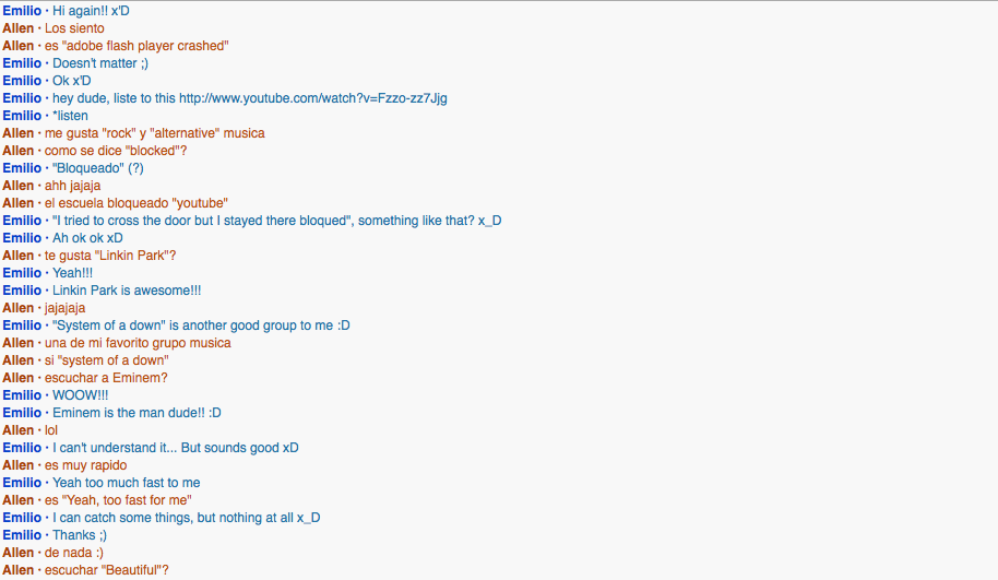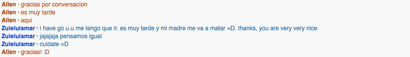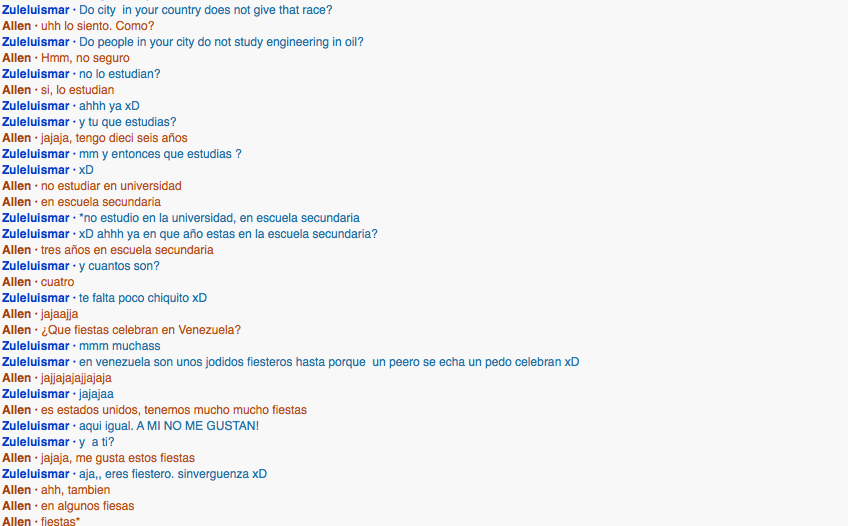 I spoke with this girl from Venezuela named Zulelulsmar. She started the conversation.What did you learn about them? What did you learn from them?