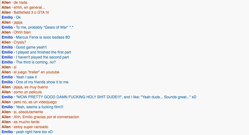 I think this time the conversation went more fluent, the guy had some similar interests with me, so it was easier to reply. I think I constructed my sentences better, and in some points I even decided to take out unnecessary words so that the vibe of the conversation was more casual.What specifically did you do well according to your goals/expectations?