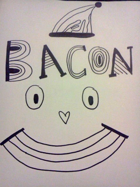 Last, but no least, I wanted to Google a work of typography where the word related to the picture. I, like everyone else in the world, love bacon. So I tried to make a bacon face while I wrote bacon in a bacon-y looking style.