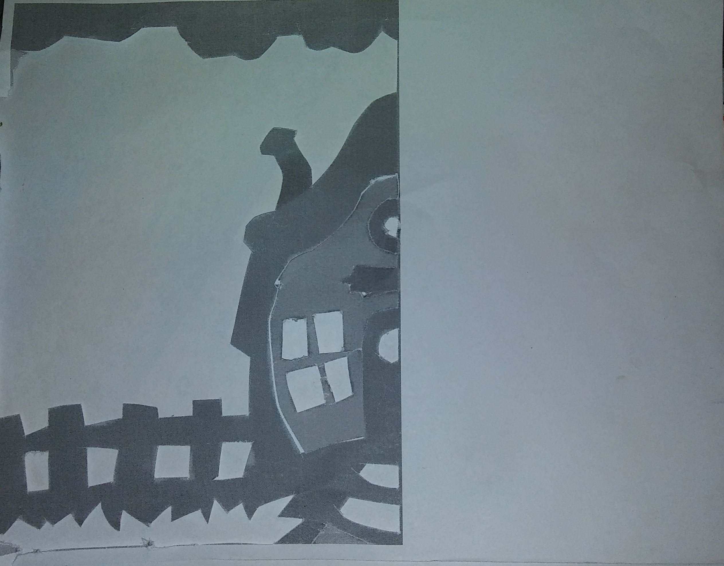 To find the negative spacing in my picture, I cut out all of the positive or lighter shaded parts of the picture. This includes the windows and grass on the ground.