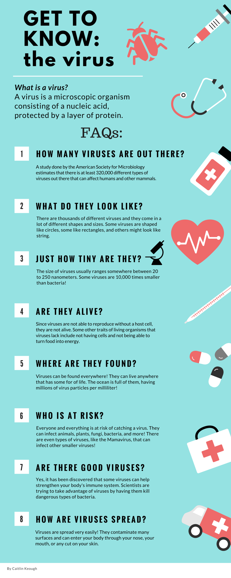 I was interested in viruses and what the difference between a viral infection and a bacterial infection is. So for my 10% time project, I researched all about viruses and created some infographics about them.