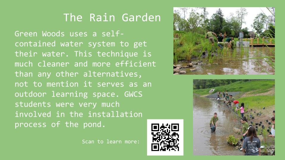 The school's campus is unique and suits GWCS's mission to create a better and more eco-friendly world. They have a lot of new technology on the grounds of their school that a lot of people have never seen before. For the second part of my Capstone, I created signs that teach visitors about the technology and have code on them that links to a website with even more information on the environmental technology that GWCS uses.