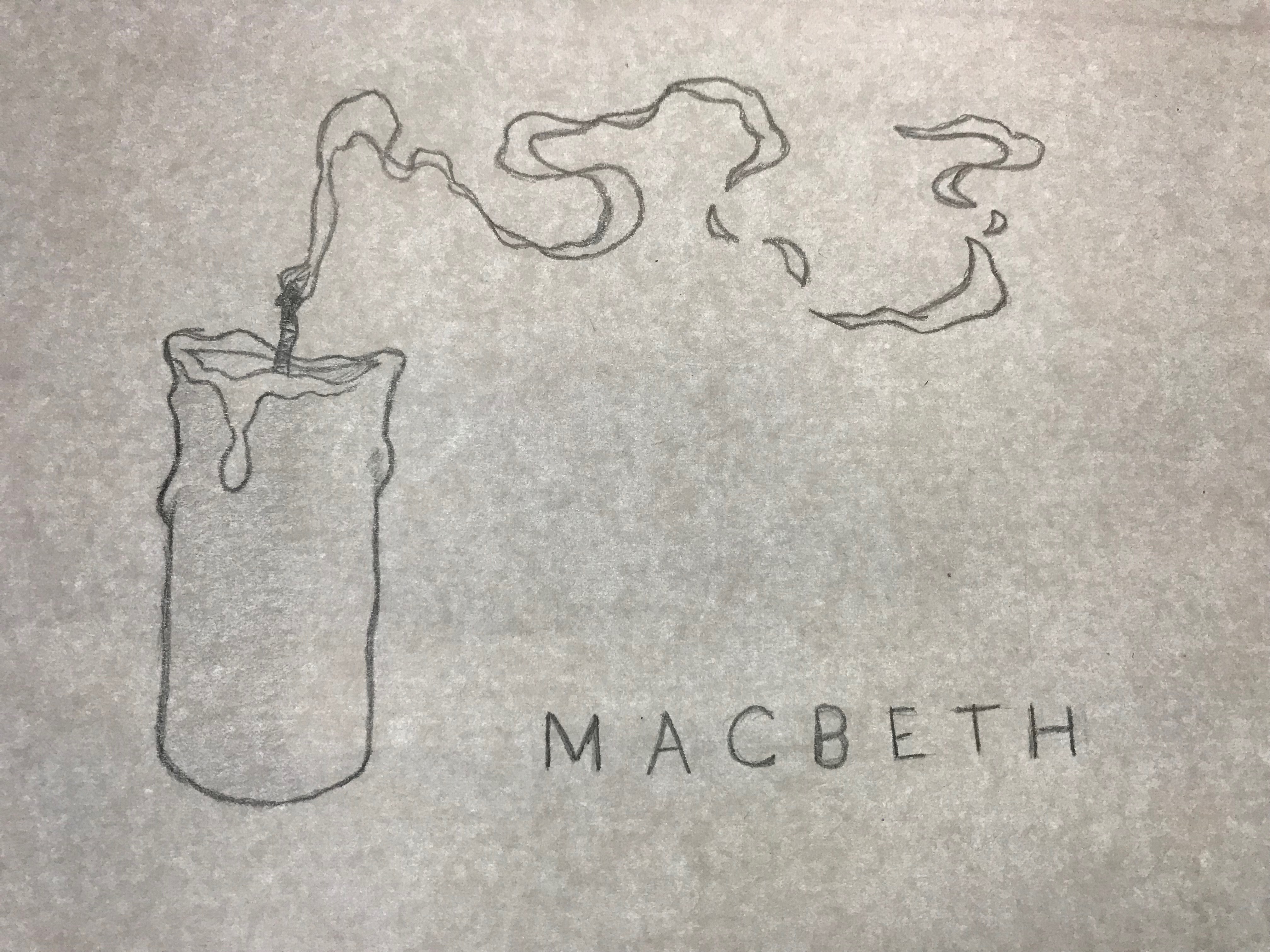 Above is our playbill cover, and I drew a candle since later in the story Lady Macbeth would carry around a candle before she started sleep talking, which was a significant part of the story. And since Macbeth and Lady Macbeth's reign came to an end, I drew the candle as if you just blew it out, which signifies Macbeth and Lady Macbeth's fate.