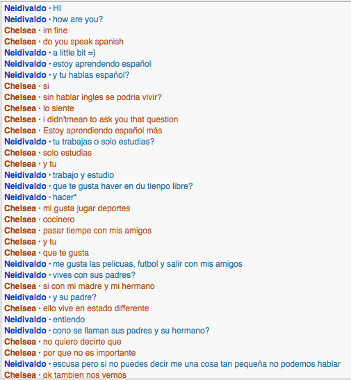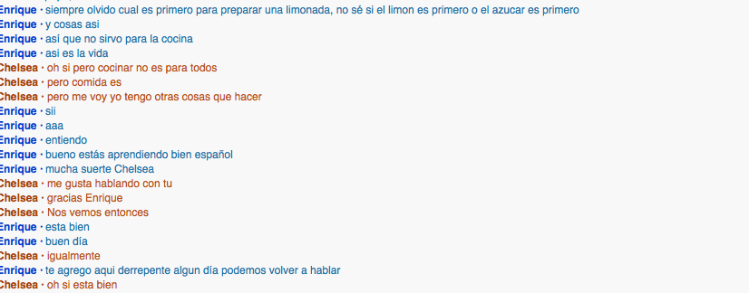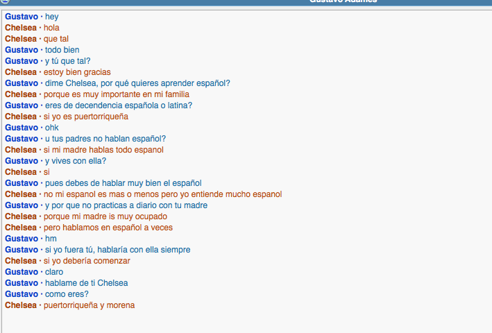 -I was able to get a conversation started even though this person logged off the chat, and I'm going to continue to chat with people and help bring my confidence up of speaking spanish.