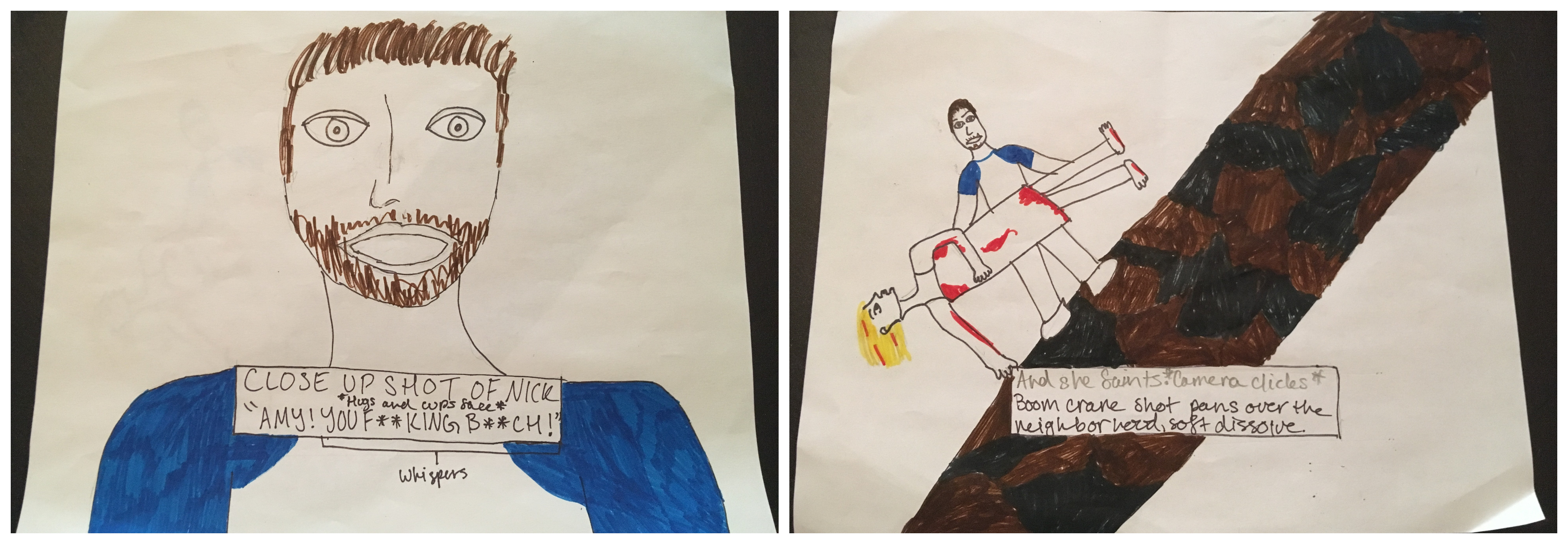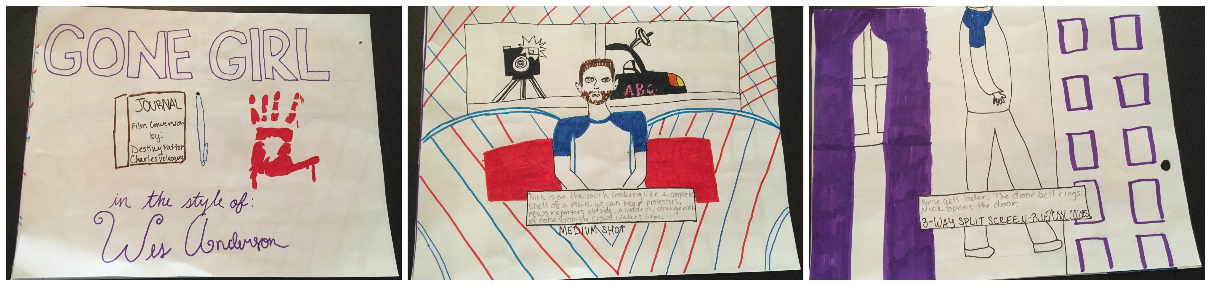 In order to convert “Gone Girl” into a Wes Anderson film we had to change a lot of the cinematic and theatrical elements of the film. We chose to do this by creating a storyboard of the scene where Amy returns home as we felt that it was one of the most powerful scenes in the film. In order for the scene to truly be recreated in Wes Anderson fashion we had to change the color palette. The palette used in “Gone Girl” is a Fincher’s palette which is a lot of blues and yellows in order to set the dreary mood of the film. Wes Anderson uses a pastel color palette and bold colors in most of his films. So we used reds, pinks, lighter blues and other colors that we felt fit with Wes Anderson’s style.