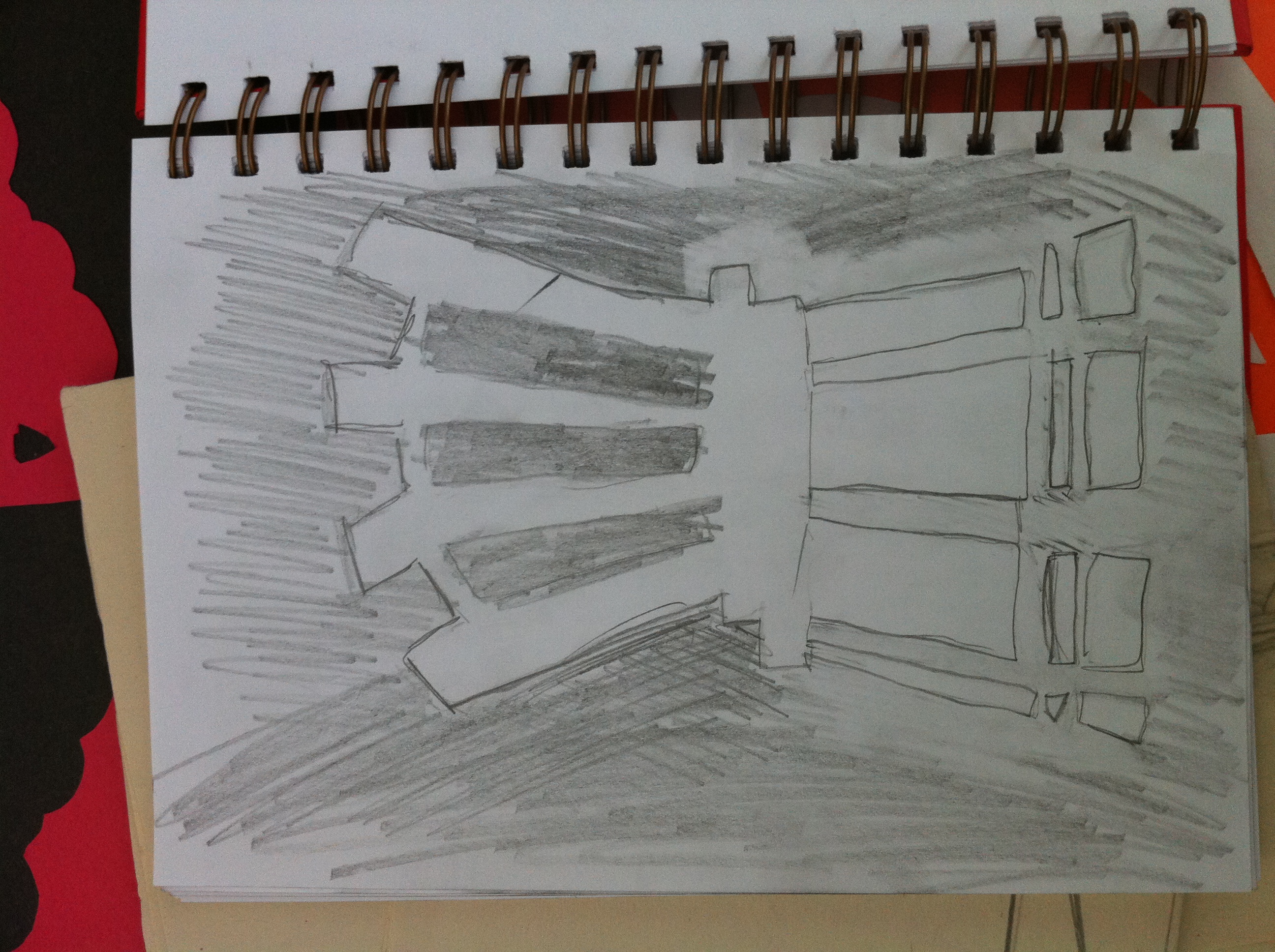 This project was to get an idea for perspective. The room we were assigned to draw was the Art room. Ms. Hull taught us about orthogonal and how they enhance 3D perspective drawings. We started by drawing a simple office room. Complete with easy square and rectangular objects such as cabinets, a rug, a skylight, a door, and a window. Then we had to apply the skills we learned with simple projects and draw the art room with perspective. An easy thing that helped was drawing all orthogonal lines to the vanishing point. Which was quite essential to drawing in perspective. The hard thing about drawing the room was having the front wall a certain length to fit the required objects.