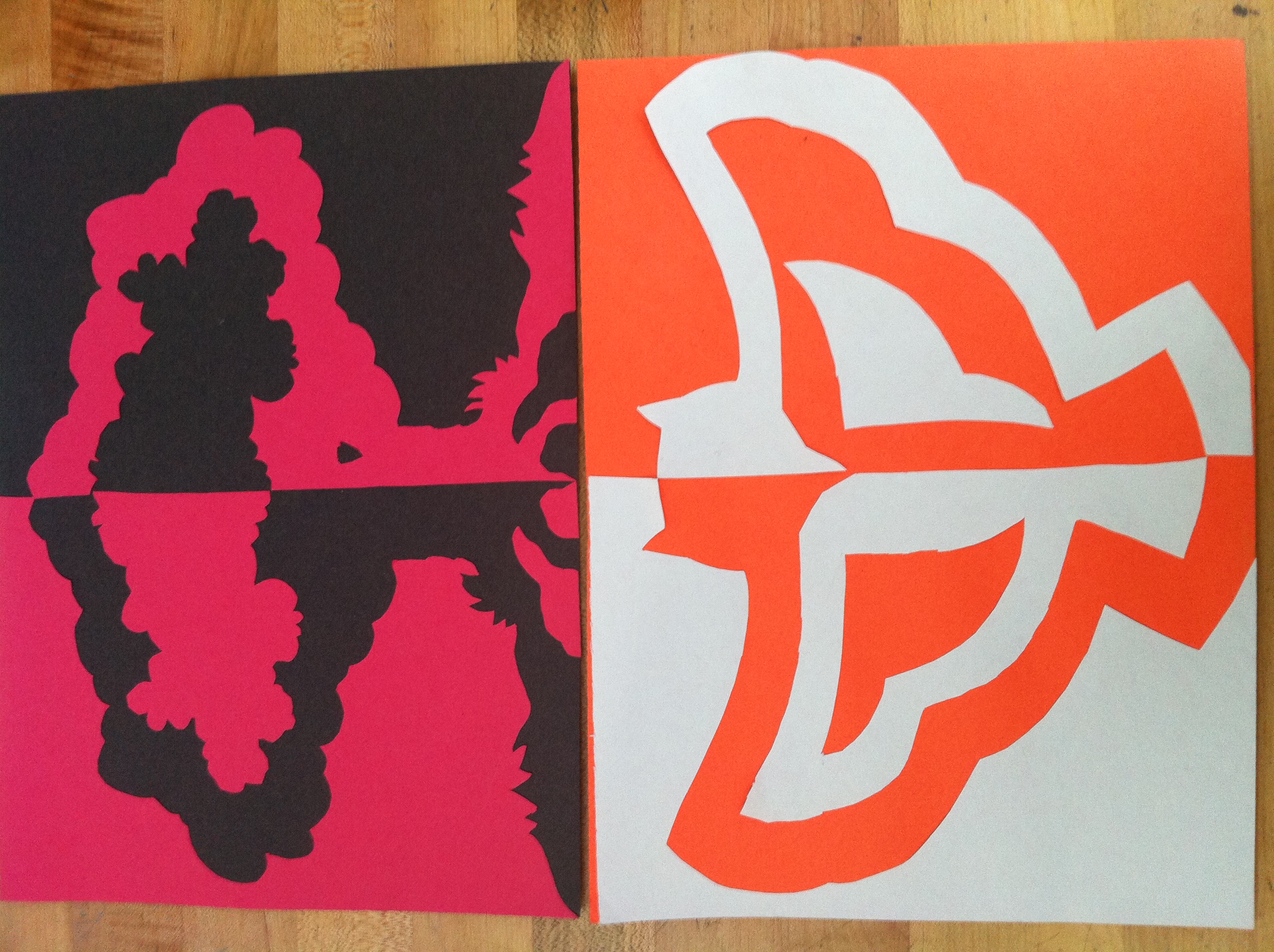 At first, I was confused because I didn't know the negative space of the owl. Then I noticed the first piece I cut out that was the background to the owl. After, I added pieces from there by adding certain shapes I cut out and made the owl. The negative space for the stools was hard. When drawing it, I had to look at it and come up with reasonable shapes that envisioned the stools in negative space.