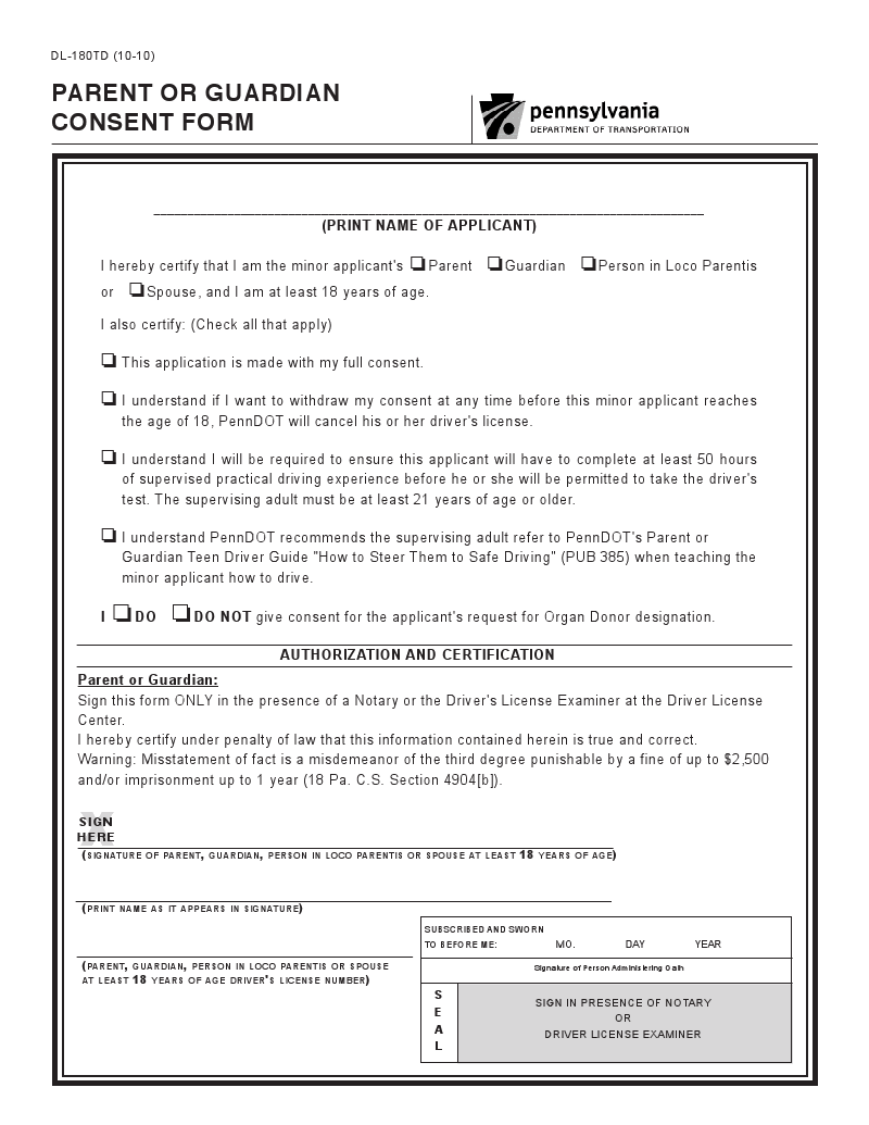 Getting your driver's license begins with the process of getting your learner's permit, and making sure you are fit to drive. There are two forms needed to get your learner's permit, they are the DL-180 (Non-Commercial Learner's Permit Application) and if you are under the age of 18 you need the DL-180TD (Parent/Guardian Consent Form).