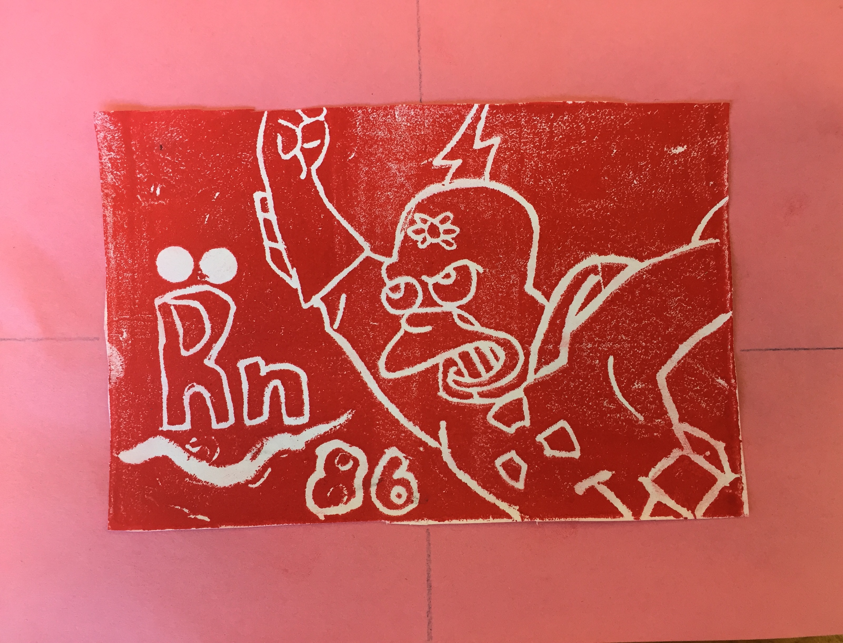 Radon was discovered by Friedrich Ernst Dorn a german chemist. Radon was found when chemist realized a gas emitting from other radioactive elements. the residue left from the elements when they breakdown is radon. 86 is the atomic number, 222 is the atomic mass. For this element a lot of images immediately popped into mind with gas masks and explosions but that seemed too easy and unoriginal. I thought of a character named Radioactive Man from the Simpsons and realized that he fit perfectly with the properties of radon. It was a different and fun way to represent Radon.