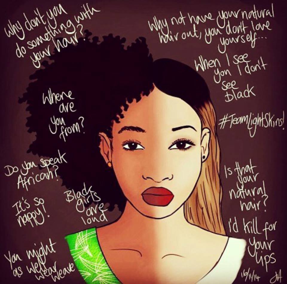 *this is a picture of the microaggressions that many black women have to face, especially darkskin women*