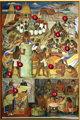 Es un mural muy grande del famoso pintor Diego Rivera. Los colores en el mural son muy diferentes y brillantes: azul , marrón, blanco, y otros colores. El tema del mural es esperanza porque muchas personas diferentes, Hispanos, Africanos, Americanos, y Blancos, trabajaron juntos para construir un futura mejor. Por lo tanto, Diego Rivera pintó el mural mostrar una foto de una mezcla de personas trabajando juntos y inspirar otras personas.