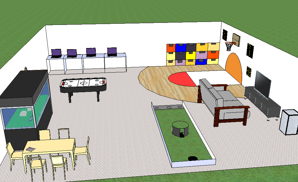 Su casa está en City of Atlantis. Está en la ciudad. Está cerca del parque y las escuelas. Esta casa es moderno y nueva con tiene colores vibrantes. Está lejos el campo y del río. Un cuarto de bicis porque, Senora Thompson su encanta an en bicicleta. Tambien hombre de las cavernas para su esposo.