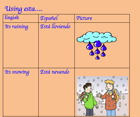 el invierno está nevando y hace mucho frío. En la primavera hace sol y fresco. ¿Y