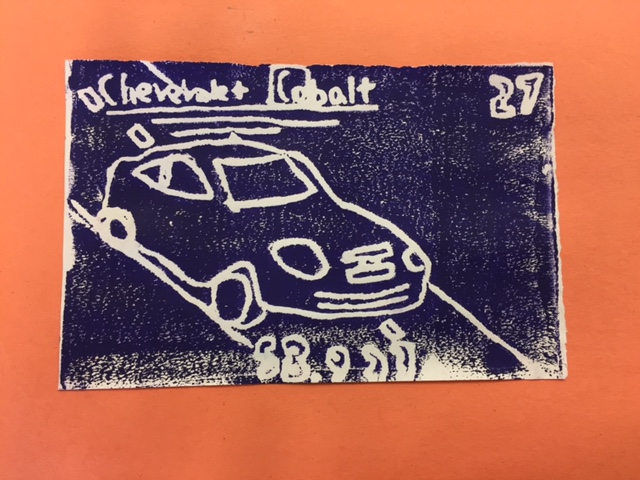 My element was Cobalt, it´s abbreviation was Co and atomic number was 27. My element was discovered in 1735. It has been and still is used to turn vases blue. To make this print first we had to create three different designs that we wanted to use for our prints. I choose the one that I thought was the best and made the final design. Then I put my design on a plate backwards so it would print out correctly. Finally I rolled ink on it and then printed it on paper. Then for one of my prints I created a paper background. If I was to do this a second time I think all I would do different was be more consistent with the paint. Other than that I think I did a good job. But that was still the best part of the project. I had a lot of fun painting everything and then pasting it on paper. It was fun because it was very relaxing and very cool to see the final product.