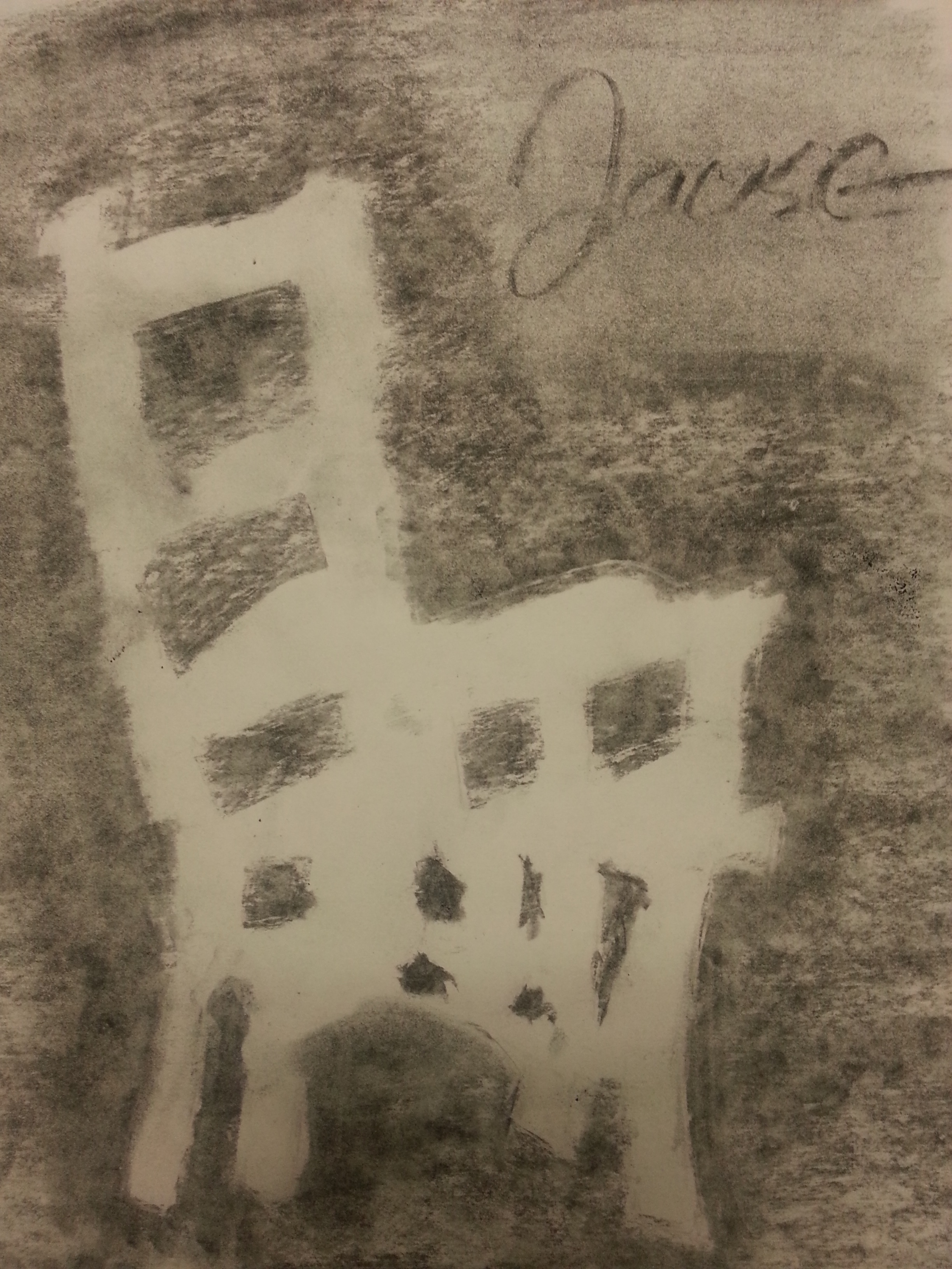 Victoria Odom's drawing shows there is much effort put into it and also shows her understandings. She was able to do more than just the walls but also she was able to add in the tables and sofa that are in the room. Also Victoria Odom and I chose the same wall so we both were able to help each other out to enrich our drawings. You can see that Victoria Odom understood well how to use her vanishing point by the way the room is laid out.
