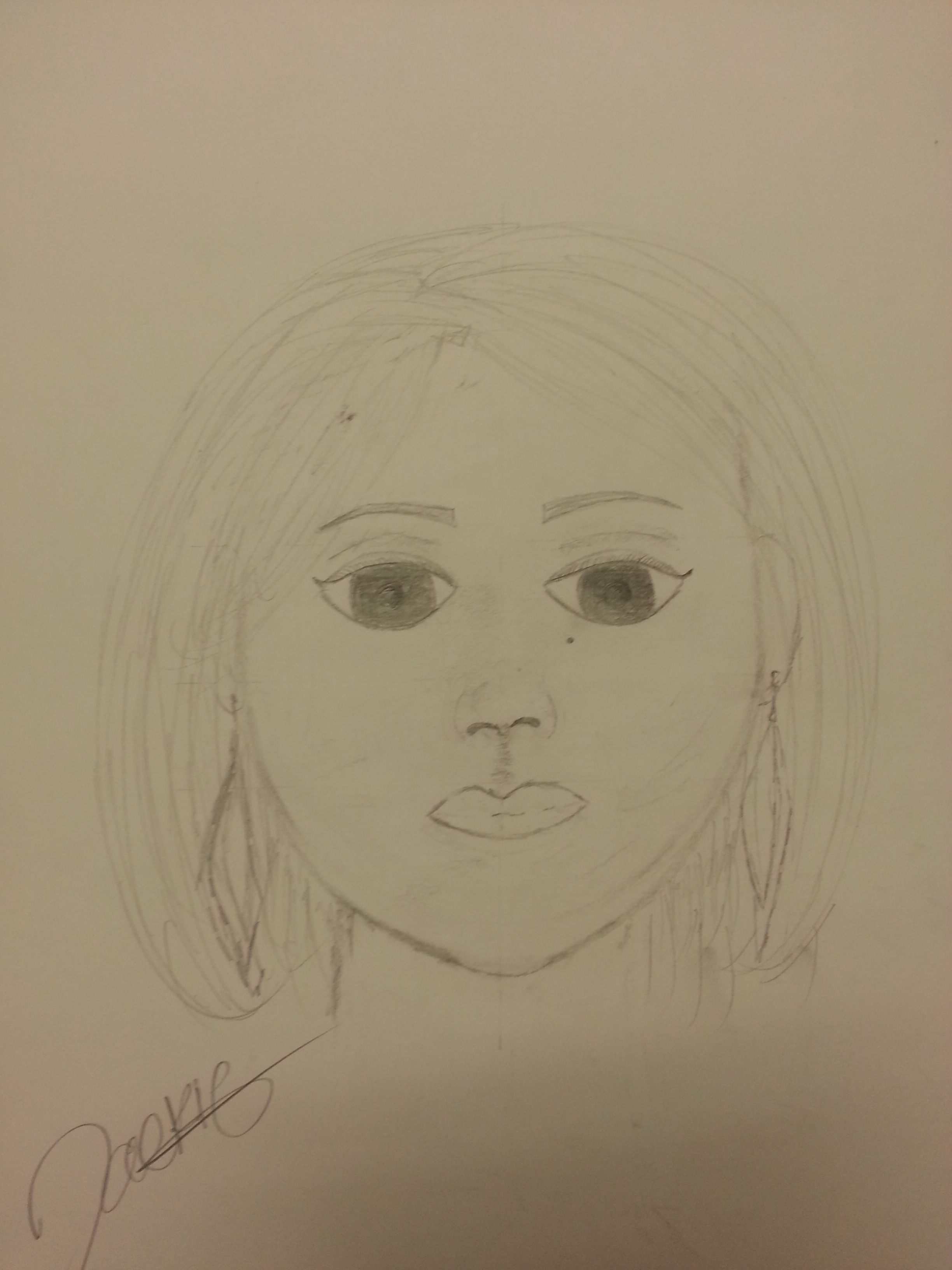 During the time that it took me to make my self portrait I learned more about capturing the human body. While I was drawing I noticed more about the features on my face and body than I would on a regular basis looking in the mirror. I started off by drawing the basic features on the human face and thought I was done. I did not realize that it didn't look like me and I had drawn some other average person. Thats when I had to really analyze my face to capture specific details and make the drawing more me. Thats where shading comes for skin tone and to capture lighting. This had to be my favorite art piece since it was challenging and I'm proud with what turned out. This is something I would like to practice another time to master it and hopefully then learn to get into more detail such as hair or eyes.