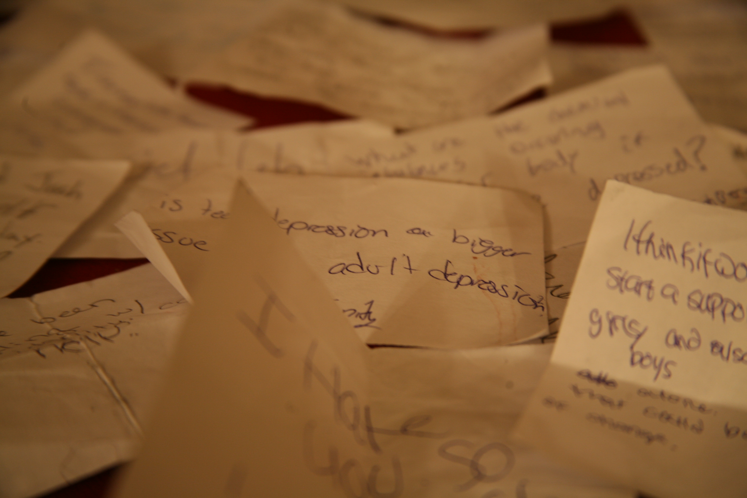 To add to my research I created a small survey. The survey asked questions like Have you or anyone you know gone through depression? Did you try to seek help for yourself or your friend? What did you try to do? If you have been depressed or know someone who was depressed did they do self harm? What kind of self harm? To take the survey yourself you can go to this address. I also interviewed a friend of mine who I knew went through some things that caused her to go to some drastic measures with herself. In the interview I asked some of the same questions as in the survey and let her tell her amazing story.