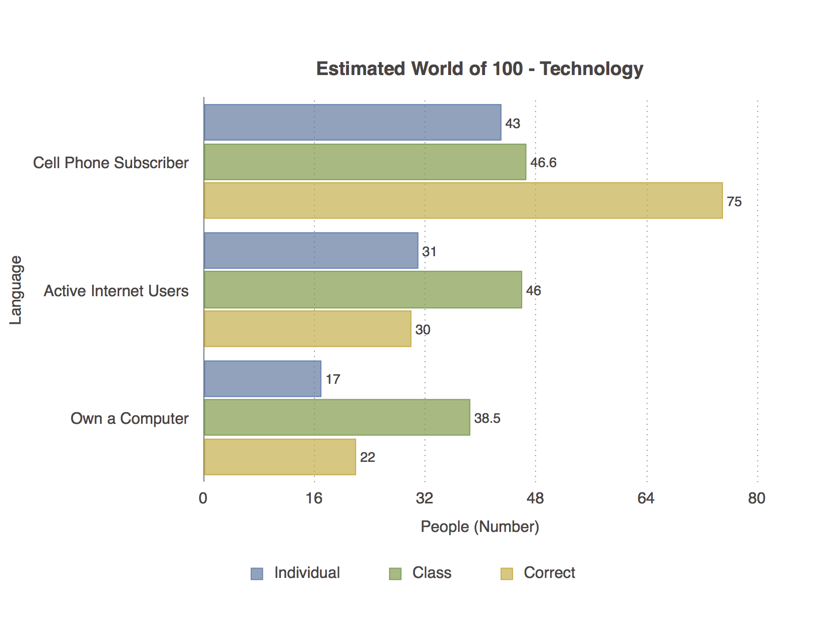 Overall, the answer for which I was most accurate was internet usage (where my guess was overestimated by only one person). This is most likely due to my technological experience and understanding of the internet. The answers for which I was least accurate were with literacy and electricity. I underestimated the percentage of households with electricity and similarly did so with education. The best attribution for such a result is that I have seen many activist programs for increasing overall literacy and technology access across the world; this caused me to over-emphasize these issues. The answer for which I was most shocked was that 75% of the world currently subscribes to a cell phone. This was most interesting as many other values for technology access are much lower. Thus, cell phones have become so widespread that they are a great way of expanding communication and internet access across the world.
