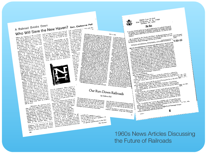 Reflection: I greatly enjoyed this project. I found the ability to deeply study one piece of history and change one aspect to create a new one quite intriguing. While fulfilling, it was challenging to find the tiny details that would change the outcome of history. The most interesting thing that I researched was the individual impacts of Senator Pell and the founder of the NARPA on the magnitude of future outcomes. Specifically, their efforts in advocating for the bill were the sole reasons that Amtrak and rail transportation exists today. They are only one example of individuals having such an impact on the historical record. Systemic changes also affect the historical record in many ways. For example, if Amtrak was never founded, the 9/11 Shanksville, PA crash. In addition, these all revolved around the one decision as to whether or not Amtrak should be created. In the future, I would like to see a possible adaptation wherein students could work in a pair with two separate changes and create an alternate history based upon two separate PODs. Also, if I were to repeat the process, I would create more primary sources for each event and expand my list of events even further.