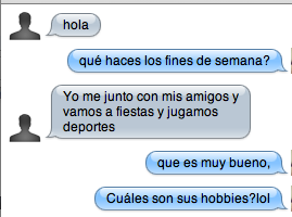 For my blog post, I talked to Estafan, he’s a fluent spanish speaking freshman, we talked a lot about what each of us enjoyed and what we did over the weekends. The conversation started off a little rocky, It was some what awkward because I didn’t really know how to start the conversation or to really say anything that interesting. Once we got started things went much smoother though. I was a little self-conscious when we were talking because I realized how well he could speak spanish and that I wasn’t even close to being as good as him. He kind of chuckled when I’d say something wrong but he would correct me and tell me what I said wrong, and how to say it right. We had a few things in common, we both enjoy frisbee, and we both love sports. We talked a little about soccer since I didn’t really know a lot about soccer he informed me. The conversation wasn’t for that long but overall it went pretty well.