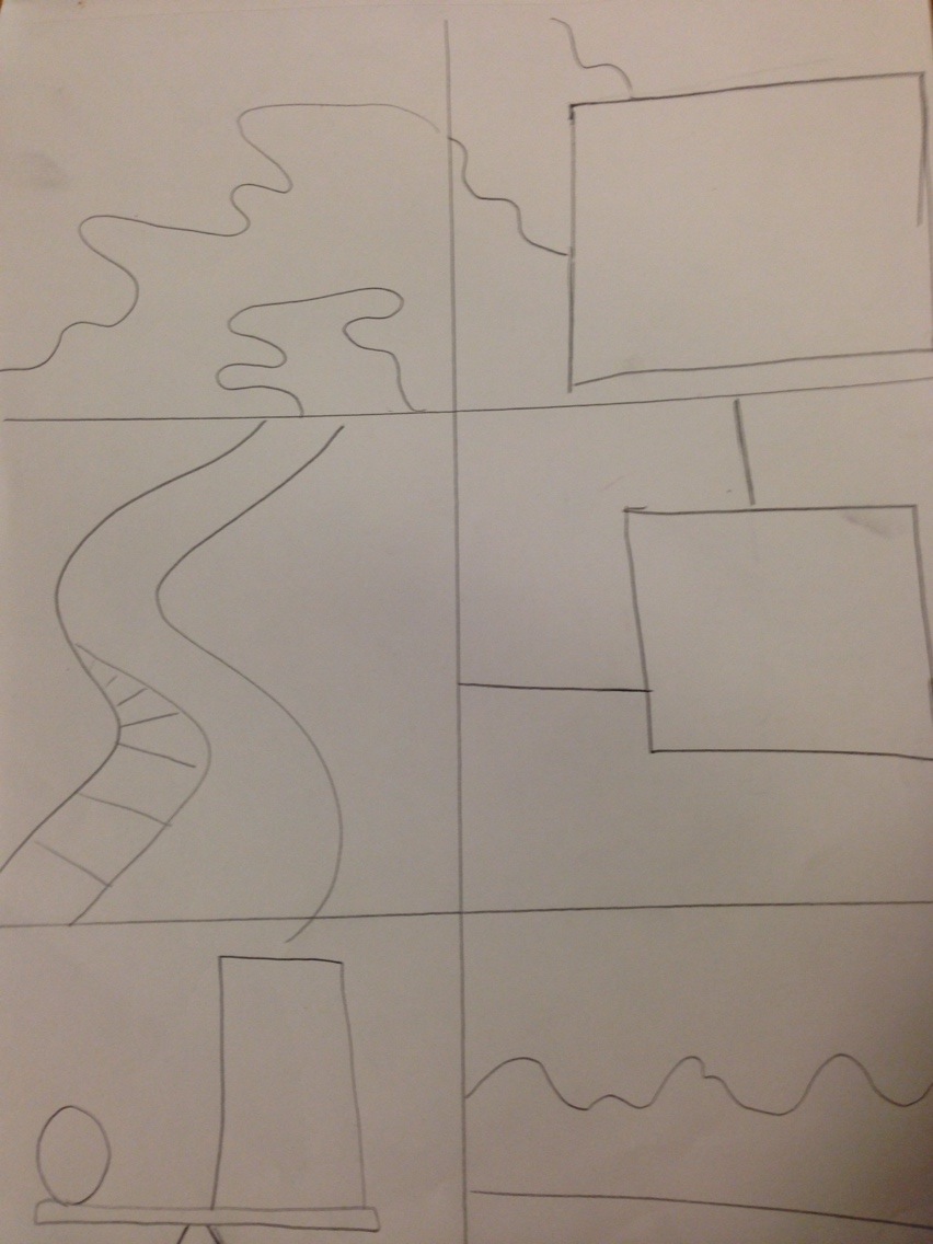 B. Explain how you found negative space in 1. your cut out? I found negative space in my cut out by seeing the outlining of my house and deciding was it the darker part or the lighter part, , 2. in your stool drawing I found the negative space in my drawling by seeing in between the stools and knowing that that was negative space.