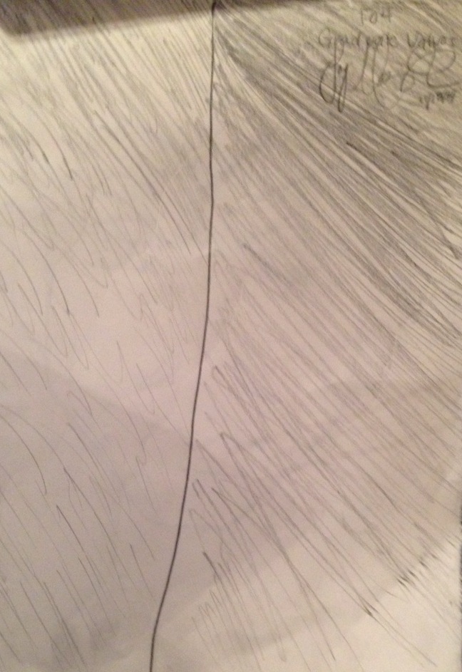 4) I mad my letters in levels , making them larger as they farther dow the paper to the point where "out" is out the picture.