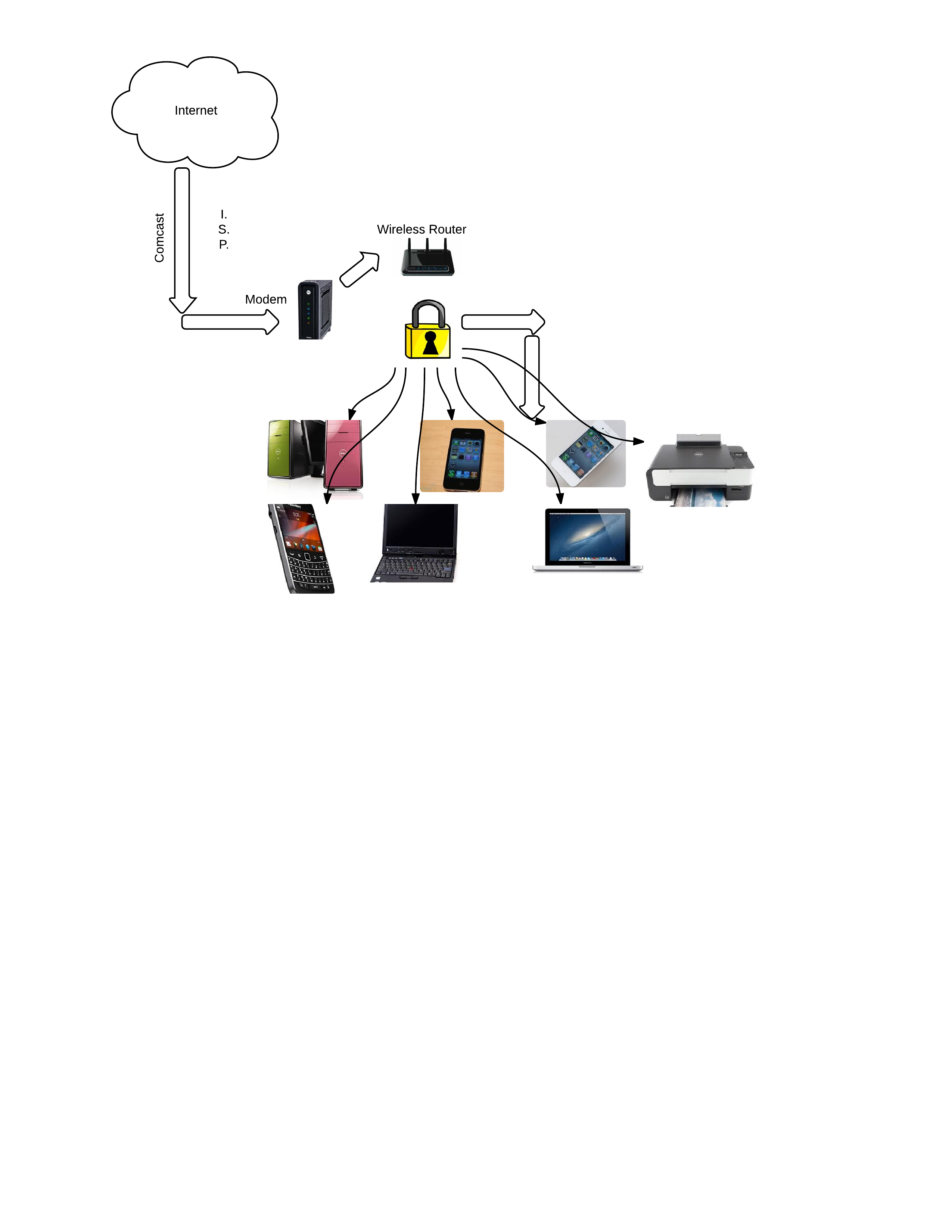 My Local Area Network has a lot of thing attached to it. The main things that are attached are my modem and wireless router. I have 2 I-phones that are able to access my network. It was one iphone 4 and iphone 4s. My Mom's blackberry is also connected to it. There are two laptops connected to the network. Last but not lesast my printer and desktop computer.