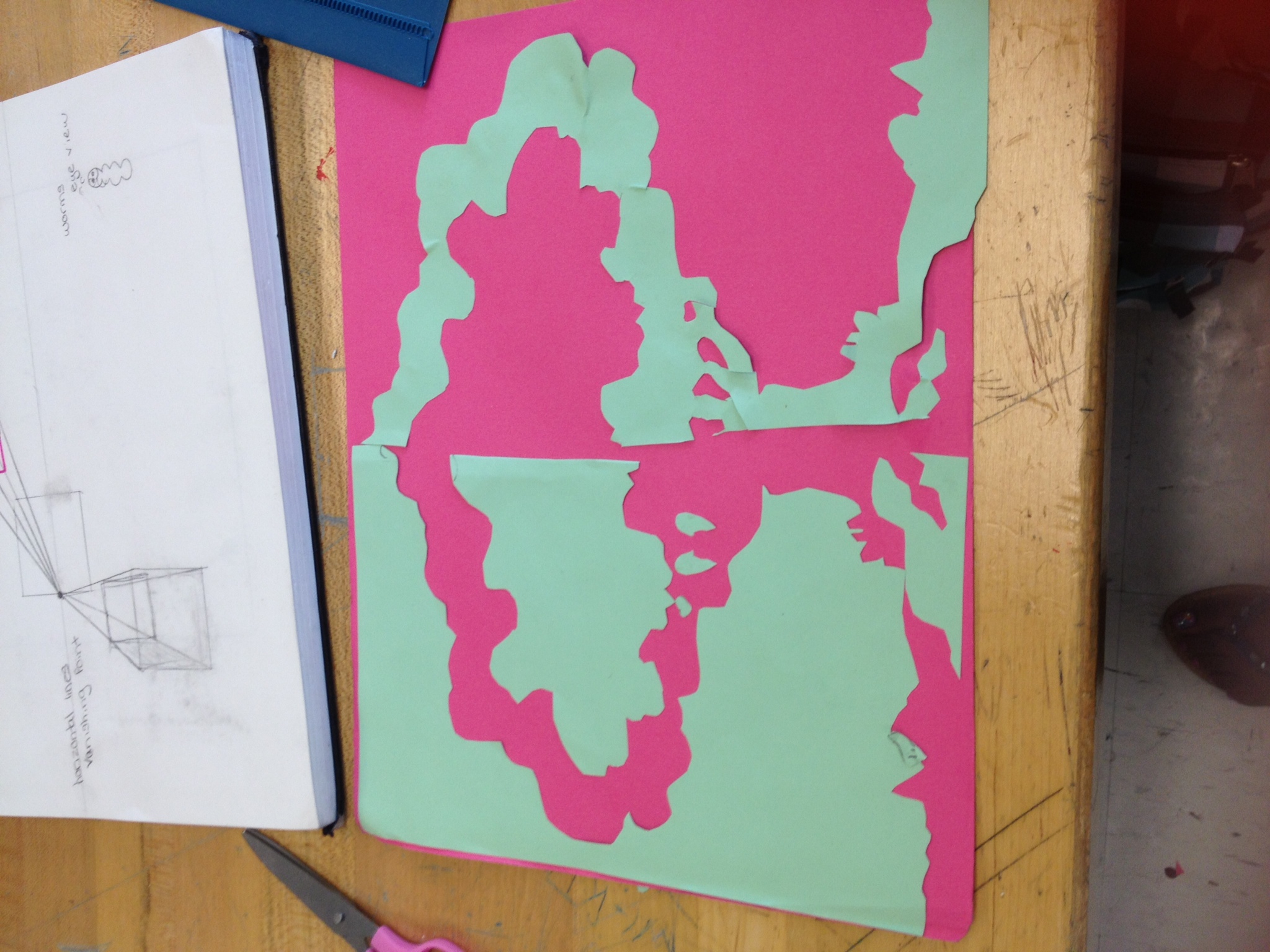 I found negative space by looking in between the spaces in the objects. Then I shaded the negative space.