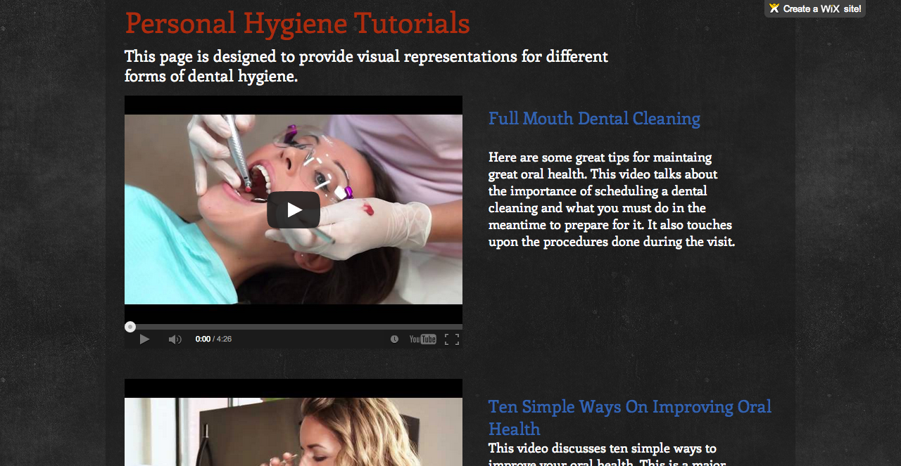 This video is very useful to this website because it discusses the ten simple ways to improve your oral health. This video was important because it helps to explain the steps towards maintaining great home care.