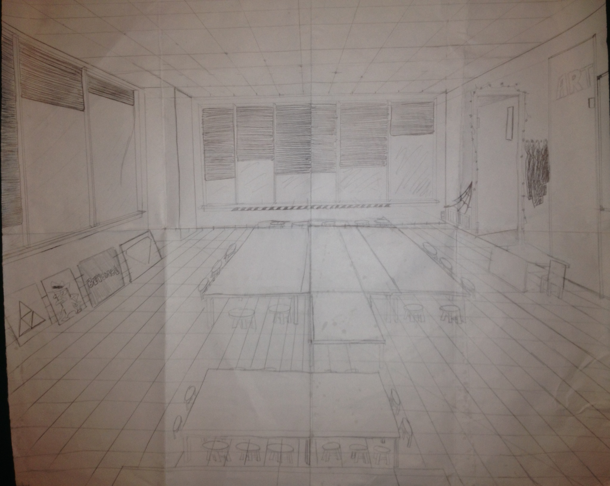 - B. Explain how you found negative space in 1. your cut out?, 2. in your stool drawing?
