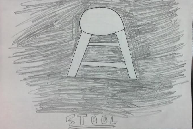 B. Explain how you found negative space in 1. your cut out?, 2. in your stool drawing? To find the negative space of the drawing I pretty much just outlined with my pencil the object that I wanted to draw so that I could get an idea of how much negative space I would need to balance my subject and the other components of the picture.