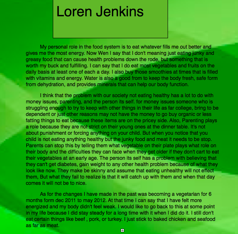 Self Reflection and Video : Loren Jenkins