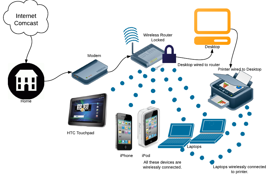 On our home network we have an iPhone, iPod, HTC Touchpad and two laptops that are always connected. They are connected to the router wirelessly.
