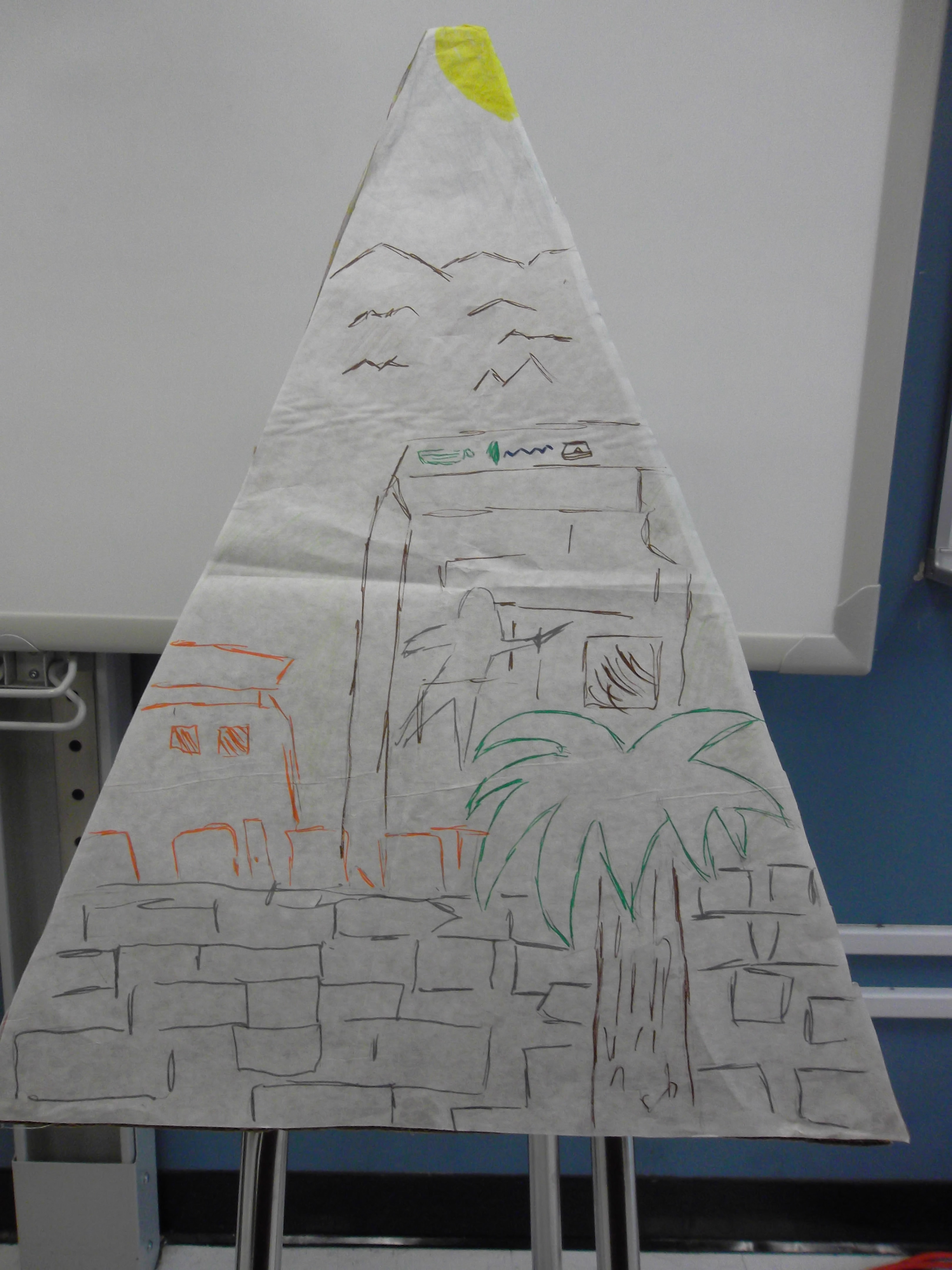 Instead of a hard-cover book, we created a pyramid with the story's scene depicted.