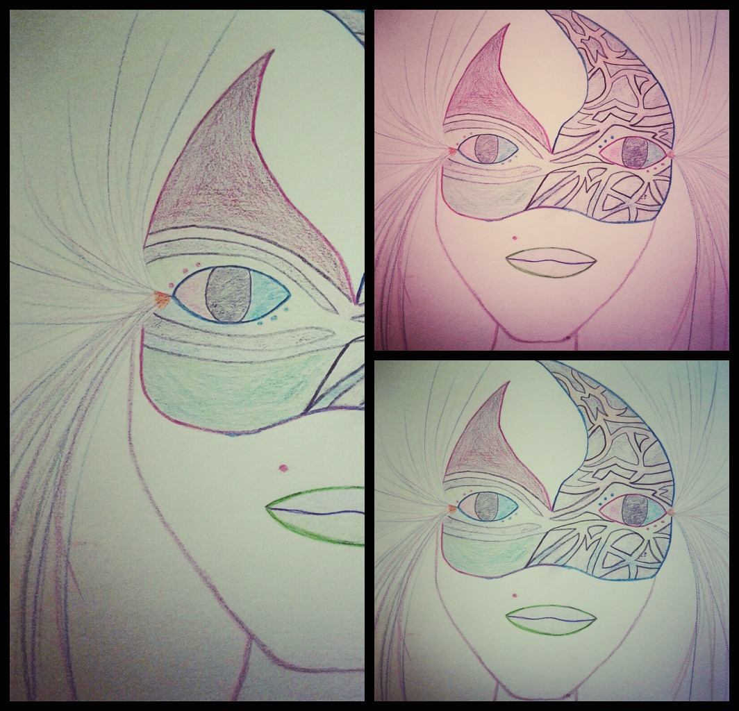 This was one of the first pieces in the quarter when I actually tried and opened myself up to create art again. It started out with a simple mardi gras mask and after a while I just started having fun with the few color pencils I had. When I realized that small idea of a mardi gras mask turned into my FAVORITE piece this quarter !