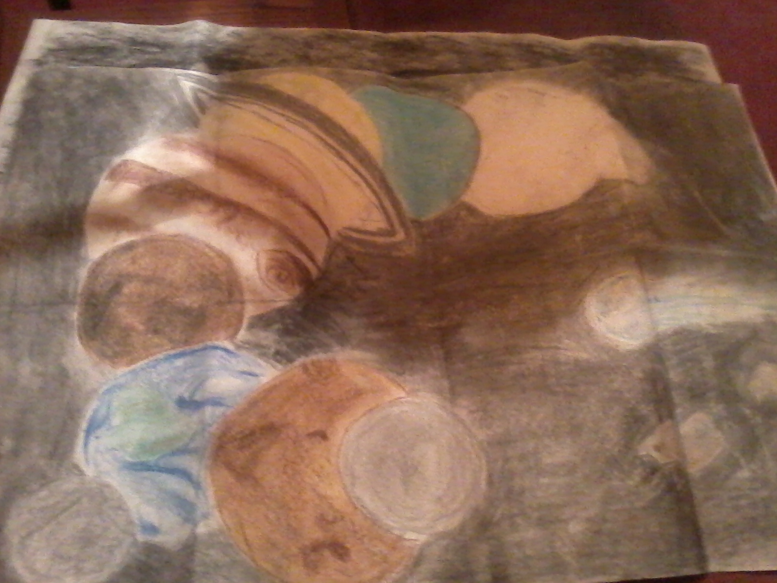 I saw the picture on google images and it immediately caught my attention. I always had a fascination with outer space and when I was little I used to go to the library to read books about the behemoth objects that filled our outer atmosphere. I started with drawing lightly the outer shapes of the planets which I would later fill in with colors. With the help of my friends Shi and Toni, I was able to make recreate the image to the best of my abilities.