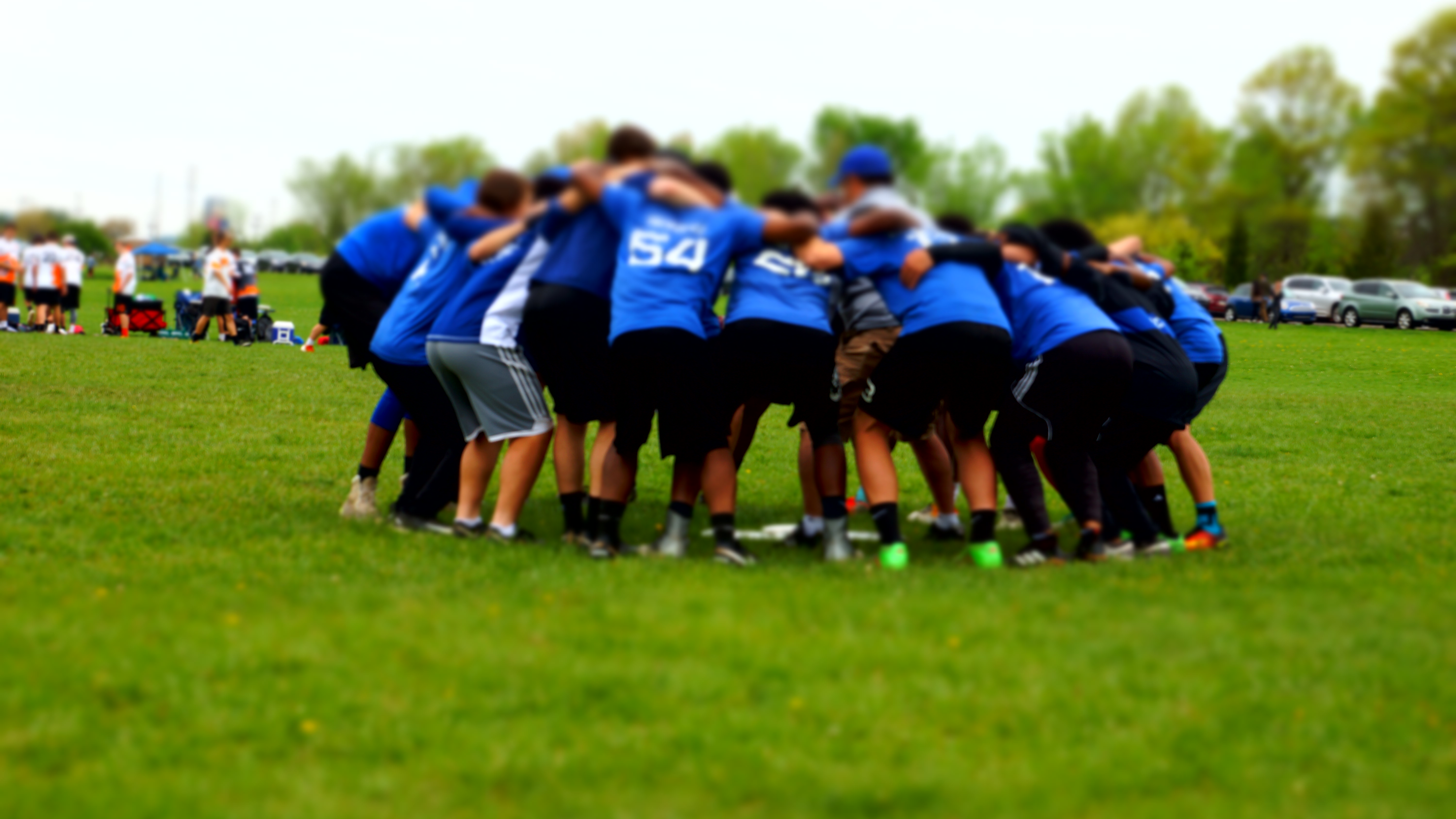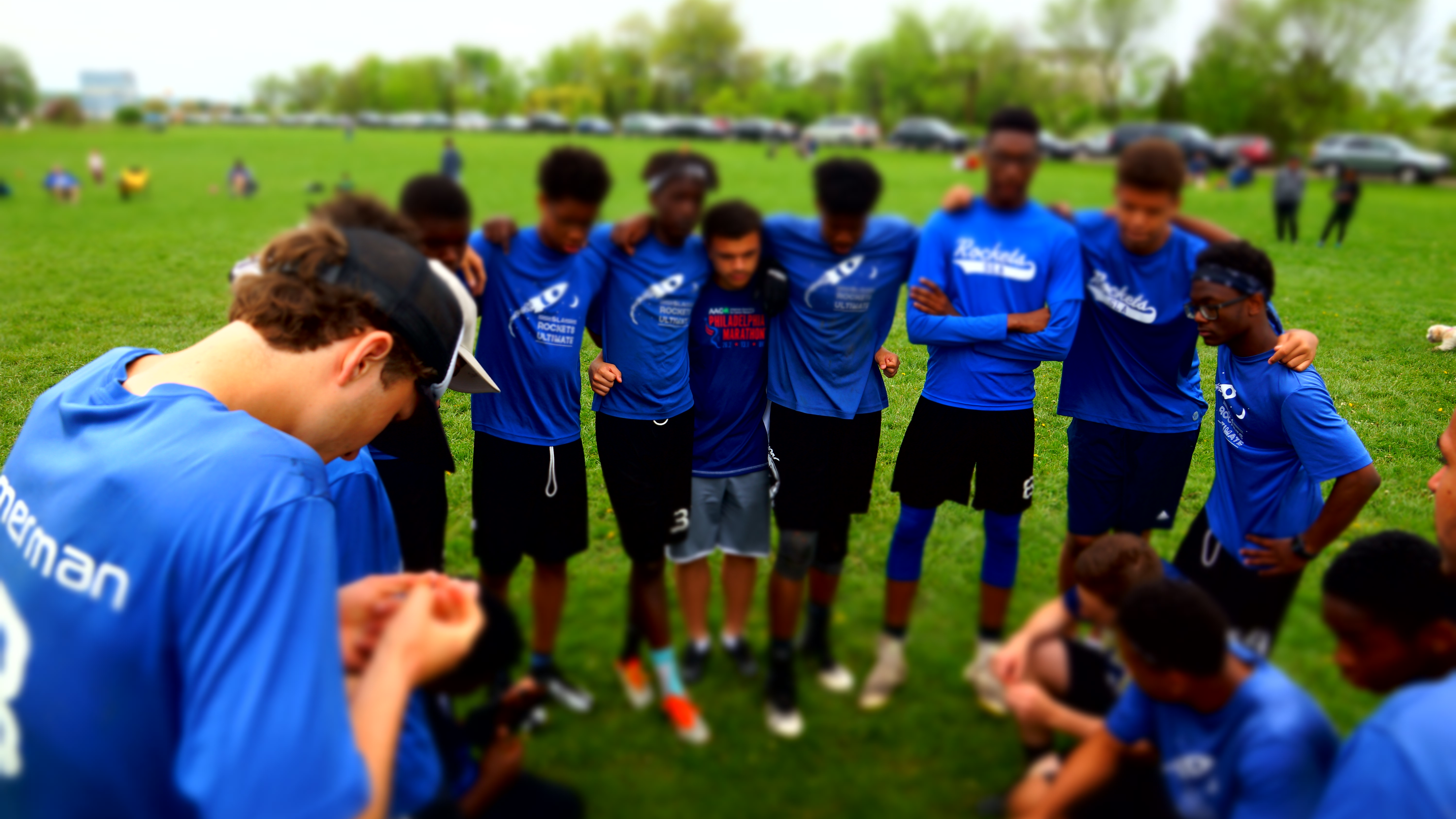 This is us huddling up before our big game for the finals of our tournament.