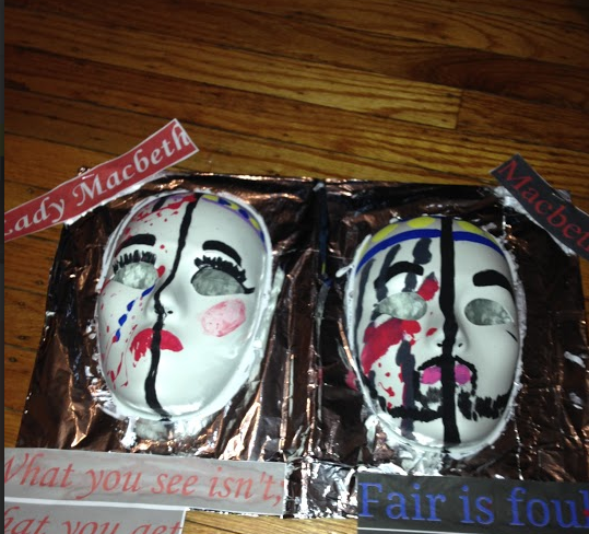 As you know for every playbill, the cover is everything. We decided for our cover that we wanted to have a metaphor for what you see isn't, what you get. With that saying, we decided to also use a quote from the book. We chose Lady Macbeth and Macbeth to be the metaphor, because those characters changed the most. Lady Macbeth is a lady and ladies back then were supposed to be innocent, but she wasn't after they killed Macduff. We wanted her to look the most out of ordinary. One side has all her makeup and she looks perfect. Then the other side shows her true self, she is crying and broken. Macbeth was a tough person before he killed all his friends and people he was supposed to guard, so he has less going on on his face. One side has a mark that's gray and the other side looks like he is going threw war. We wanted our cover to reflect the metaphor of the whole play.