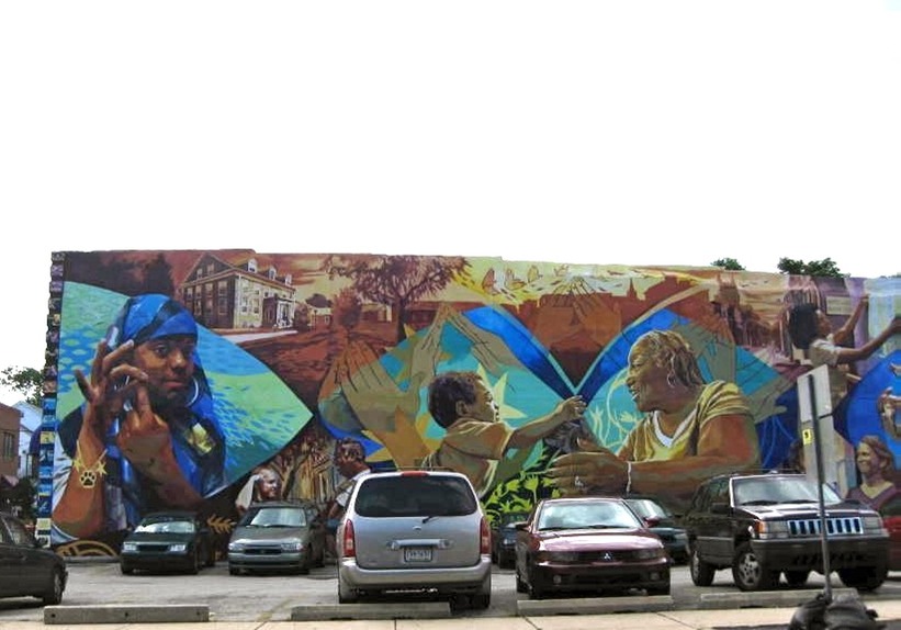 - Trabajando juntos, todo el mundo están trabajando juntos en este mural