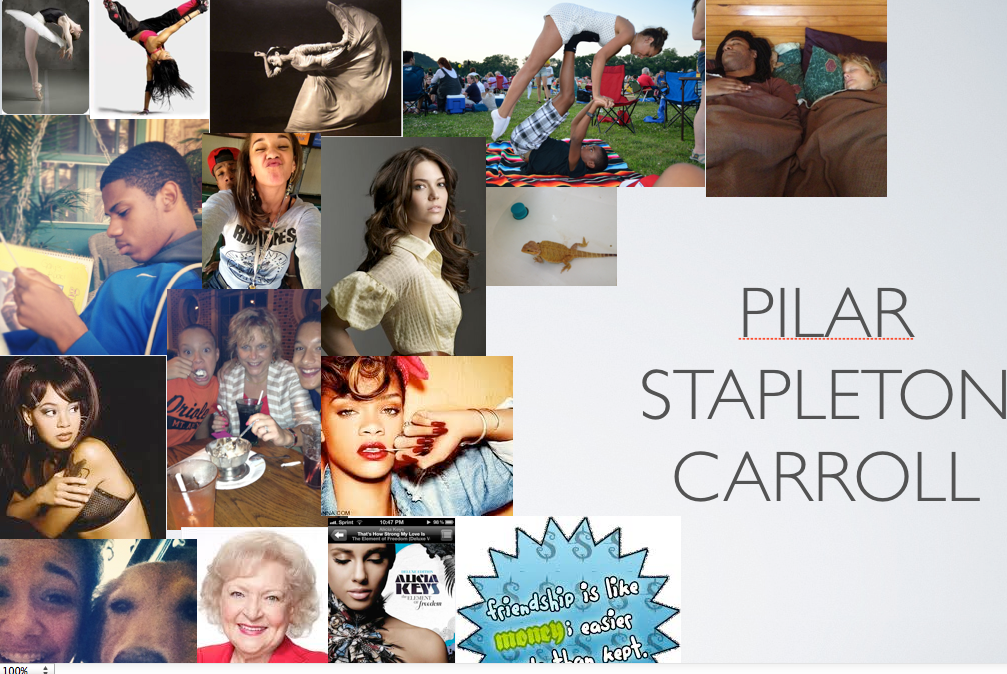 I chose to put my pictures in this way because, they all clump together, In a way that works with the eye. So you can look at any picture you want, and it would explain me. I put my name isolated on the side, so people could automatically see that.