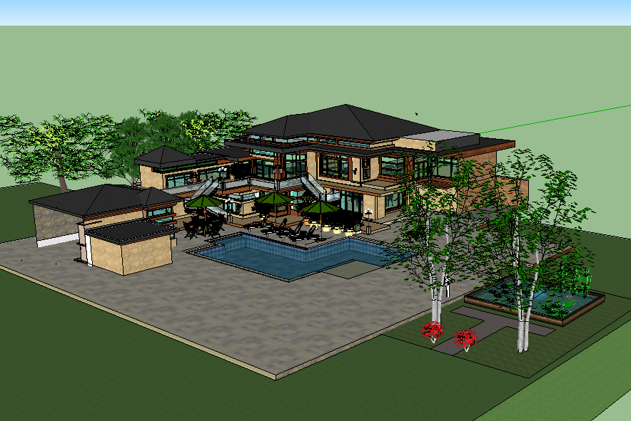 Tres ninos dormitorios tiene un mesa, un ventana, un espejo, y un tele. Sala de música tiene tres guitarras, un batería, y un teclado. En la comedor tiene dos mesas, dos lámparas, un ventanas, y seis sillas. En cueva de hombre tiene un tele, un bar, y una meas billar. En la sala tiene dos sofás, un tele, tres ventanas, y una mesa.