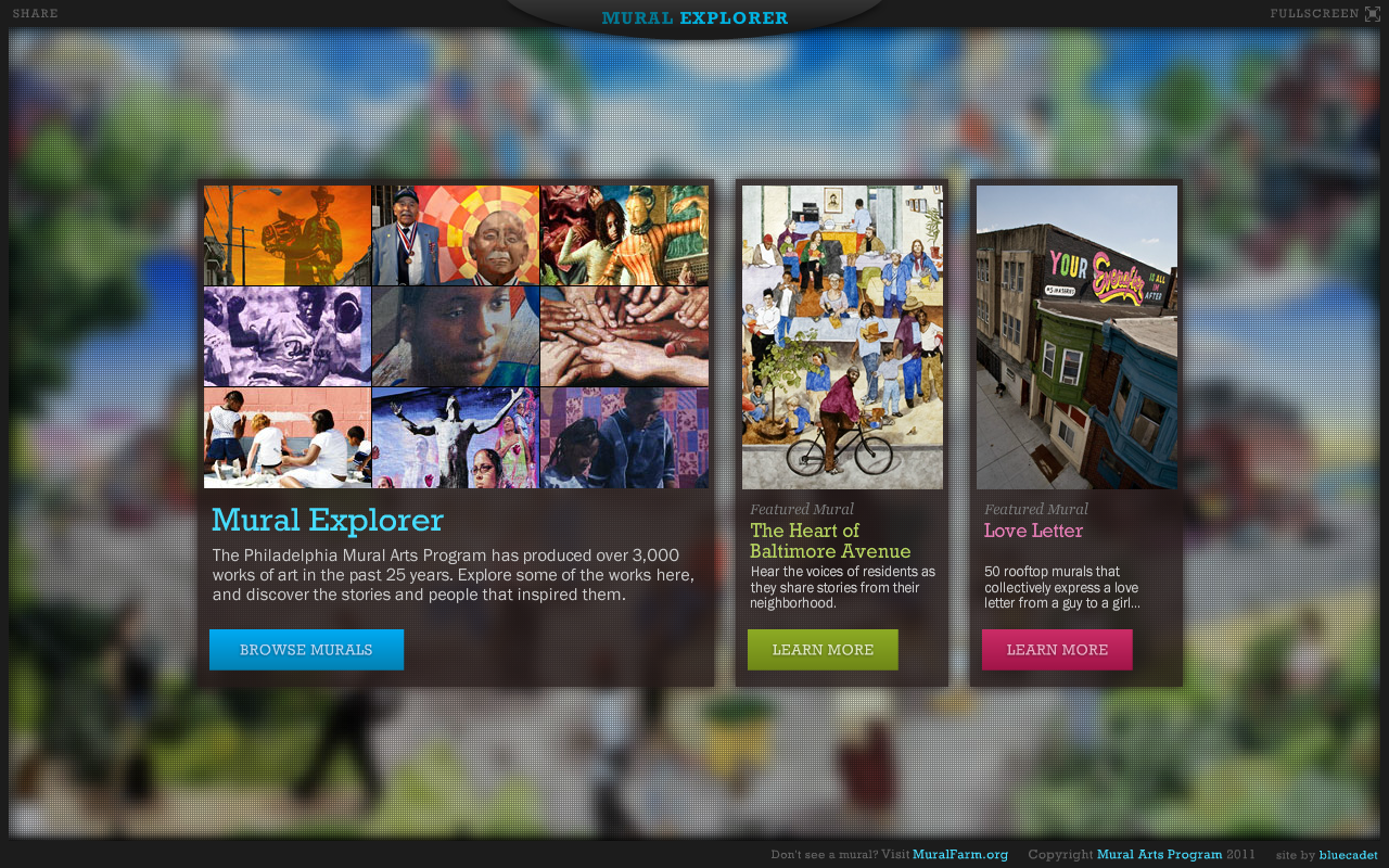 “Educational programs use an intensive curriculum that involves mural-making as a dynamic means to engage youth and to teach transferable life and job skills such as taking personal responsibility, teamwork, and creative problem-solving,” says a bit I retrieved from the information page on the Mural Arts Program’s web site. Explore more of the Mural Arts here: http://explorer.muralarts.org