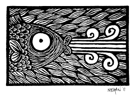 Megan Lino’s Fish Print really stands out to me as a viewer. I notice that there is a break in pattern by the fish’s “beams of light” which is really aesthetically pleasing. Also I notice that the things surrounding the fish are being attracted to the fish. I wonder how Lino came up with this idea. I also wonder what message she is trying to say. Although, what if Lino added another fish? I wonder how she would break the pattern once again. This is a great piece of work that probably took days and hours to create, which is why I appreciated it so much.