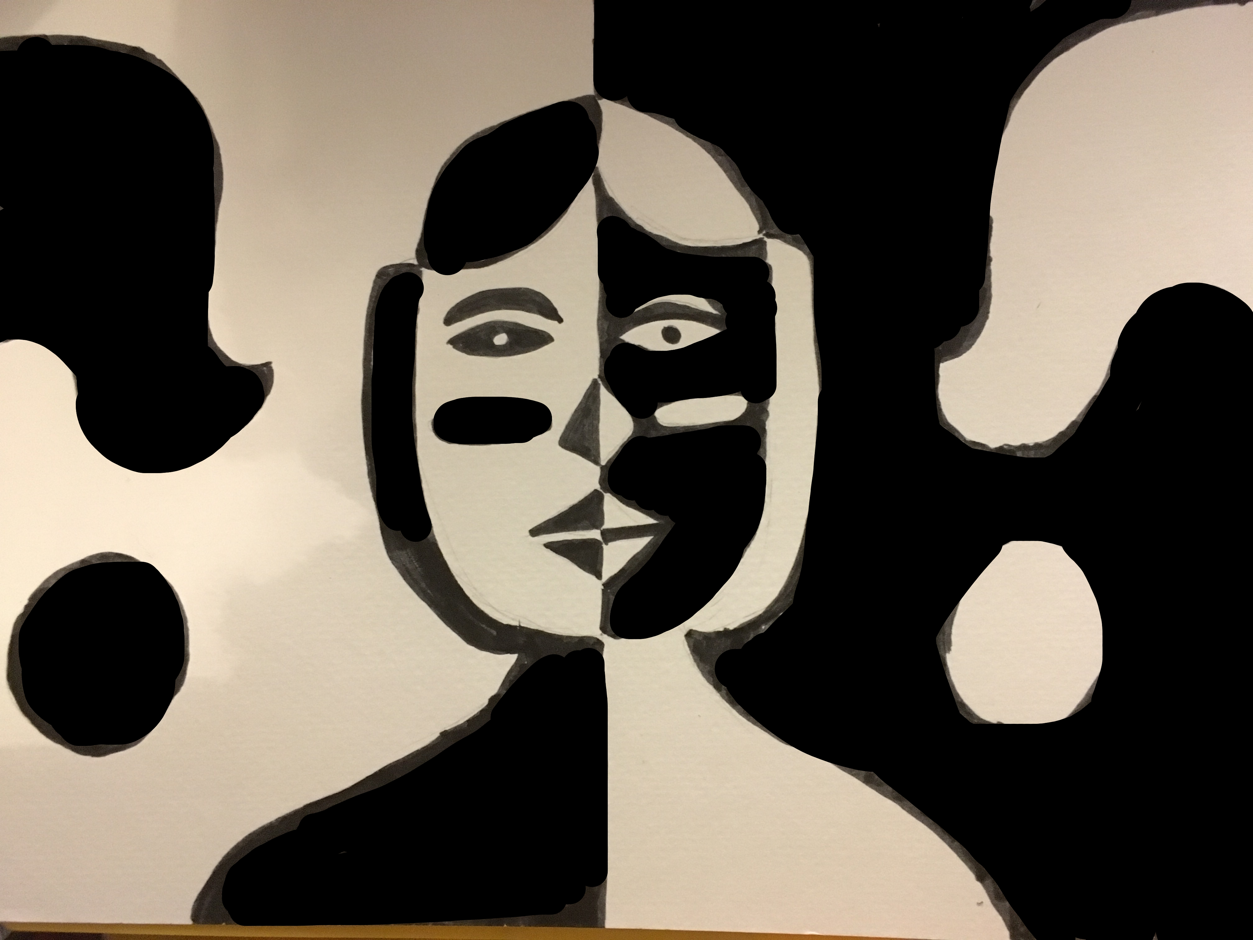 In my design, the negative and positive space both are used to highlight my features. I cut out the positive space which is my hair, and other facial features. To contrast, I left negative space to highlight the features.